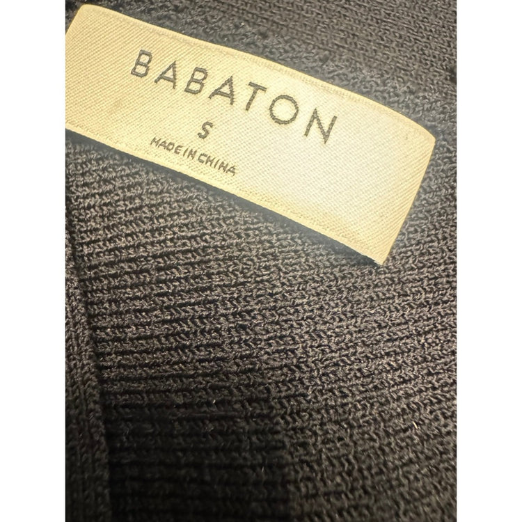 Chic and minimal Babaton black knit mini dress. Features a halter-inspired cross-neckline, ribbed stretch knit fabric, and a flattering slim fit. Perfect day-to-night piece – wear with boots, heels, or sneakers for versatile styling.