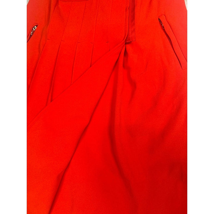 Carlisle Red Sleeveless Dress Pleated Midi Dress Zipper Pockets Size 6 Career