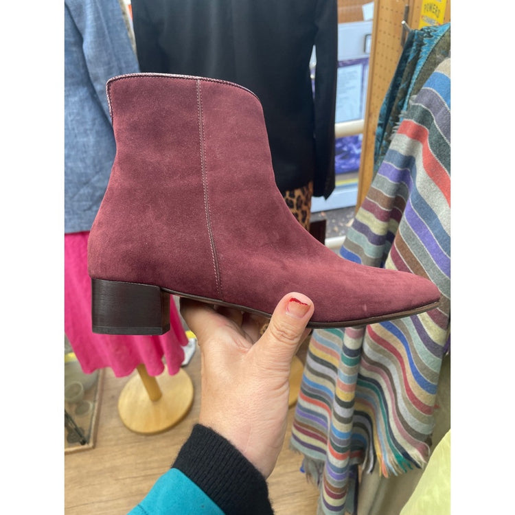 Eliot Zed London Suede Ankle Boots – Burgundy, Made in Italy (Size 39) USA 8.5