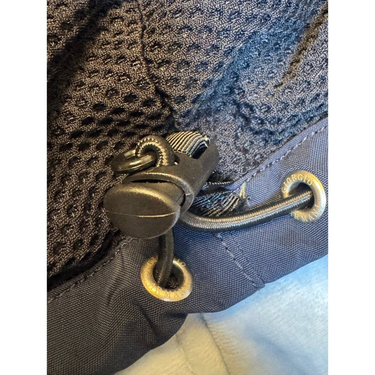 Elevate your outerwear with this luxe Giorgio Armani jacket, crafted in Italy with Armani's signature refinement. Designed in a sleek navy blue, it features a full front zip with logo pull, adjustable hood, and lightweight