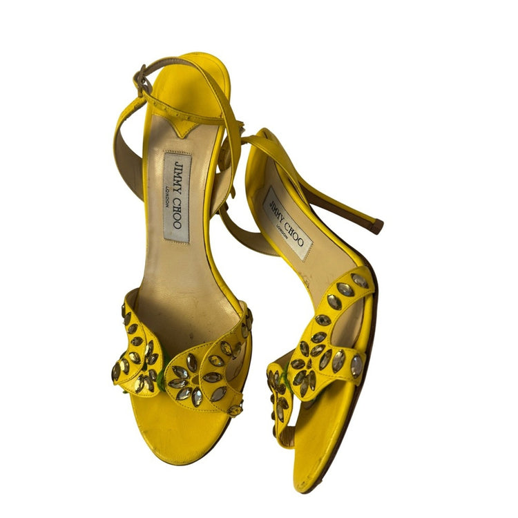 Jimmy Choo London Yellow Jeweled Ankle Strap Heels Size 40.5 Made in Italy
