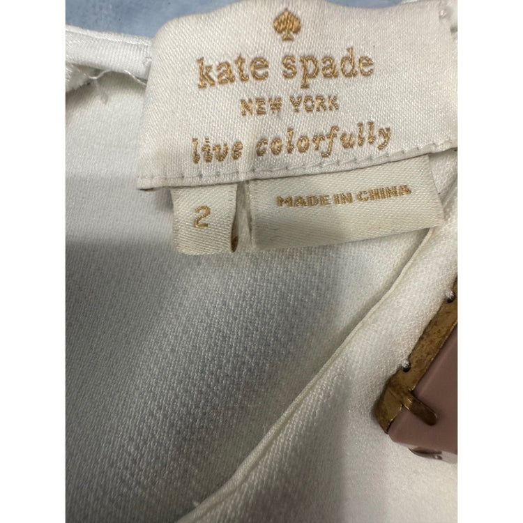 Kate Spade Ivory Embellished Shoulder Short Sleeve Top - Size 2