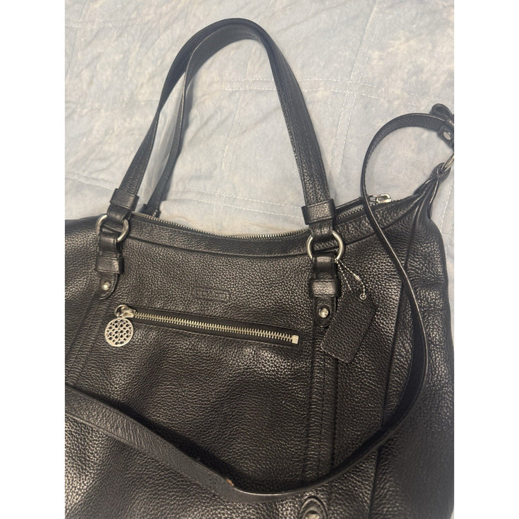 Coach Kristin Satchel Black Pebbled Leather Shoulder Crossbody Bag Purse 16”