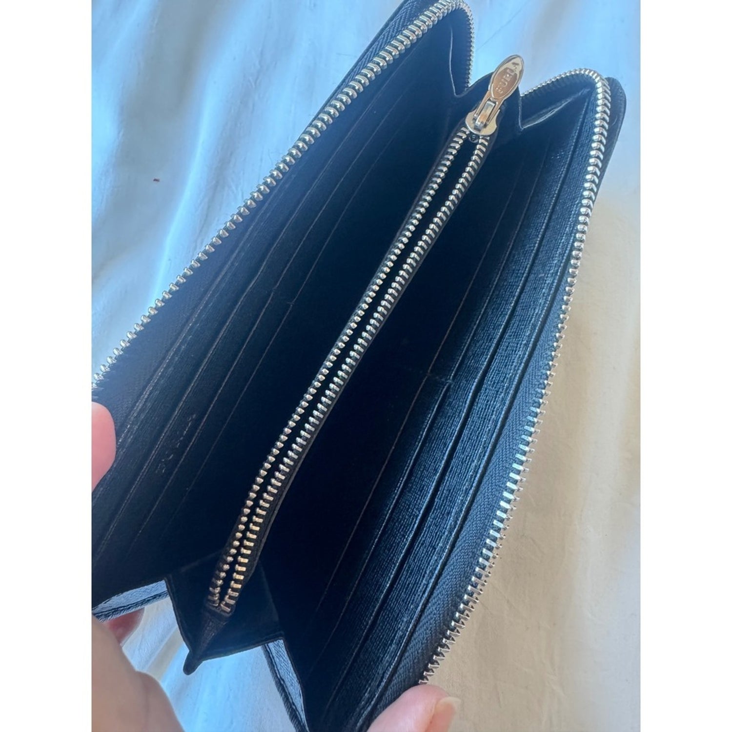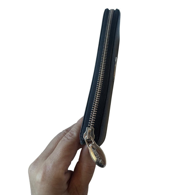 Classic Italian craftsmanship meets everyday elegance. This Furla zip-around wallet is crafted from rich black textured leather with a smooth finish and polished silver hardware. The interior is perfectly organized with multiple card slots, bill compartments, and a secure coin pocket. Sleek, timeless, and built to last.