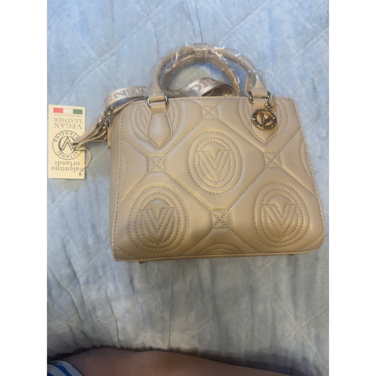 Valentino Orlandi Vegan Leather Quilted Tote Beige Gold Charm Top Handle NWT