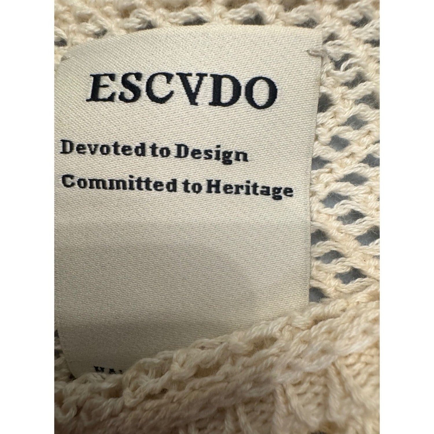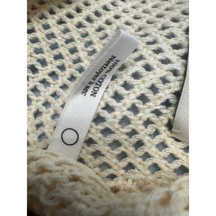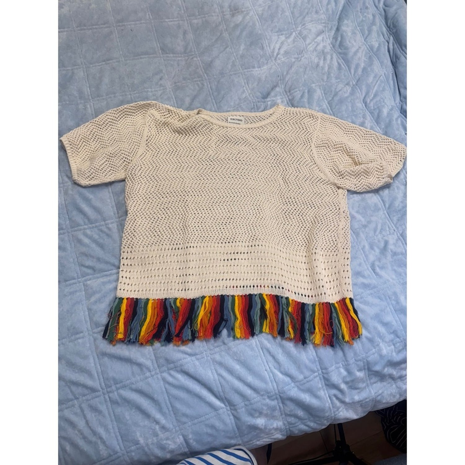 ESCVDO Carisa Crochet Fringe Hem Top Cream Multi Trim Knit Fest Boho – Size S