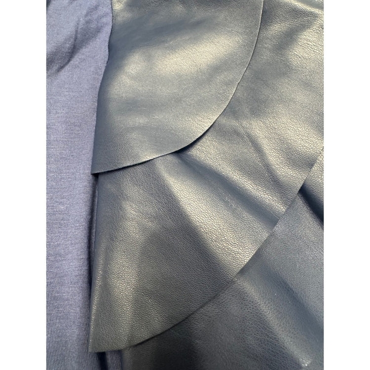 Gracia Top Navy Blue Faux Leather Ruffle Sleeve Crew Neck Short Sleeve XL