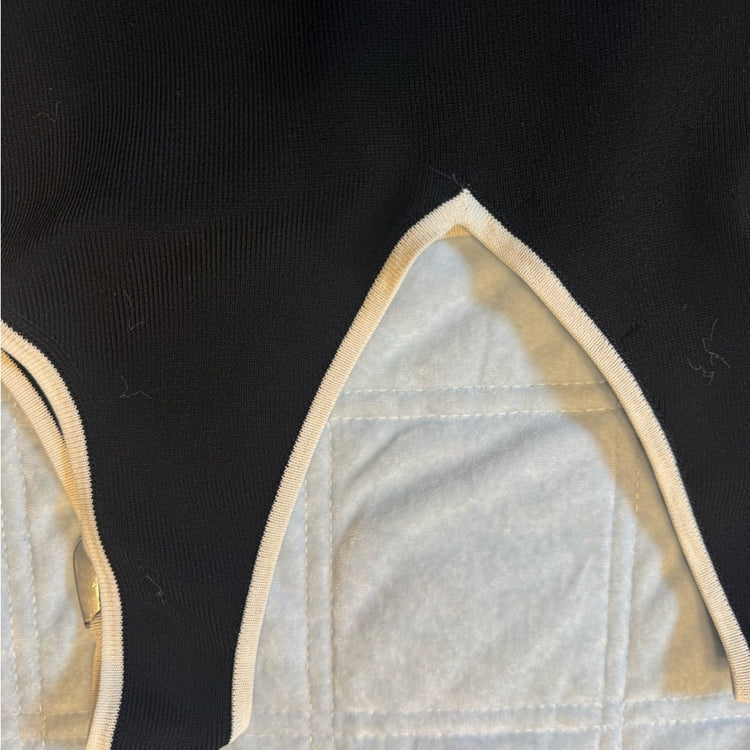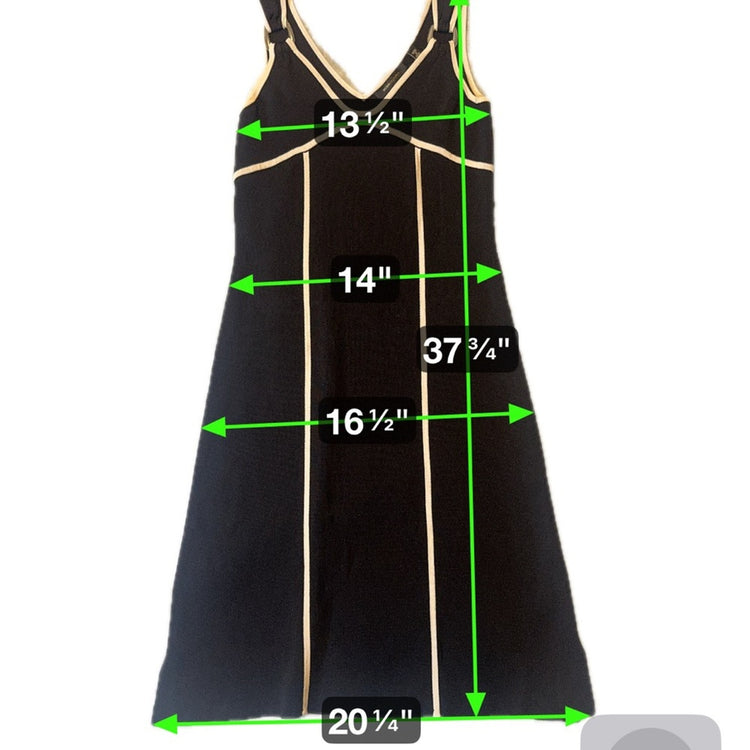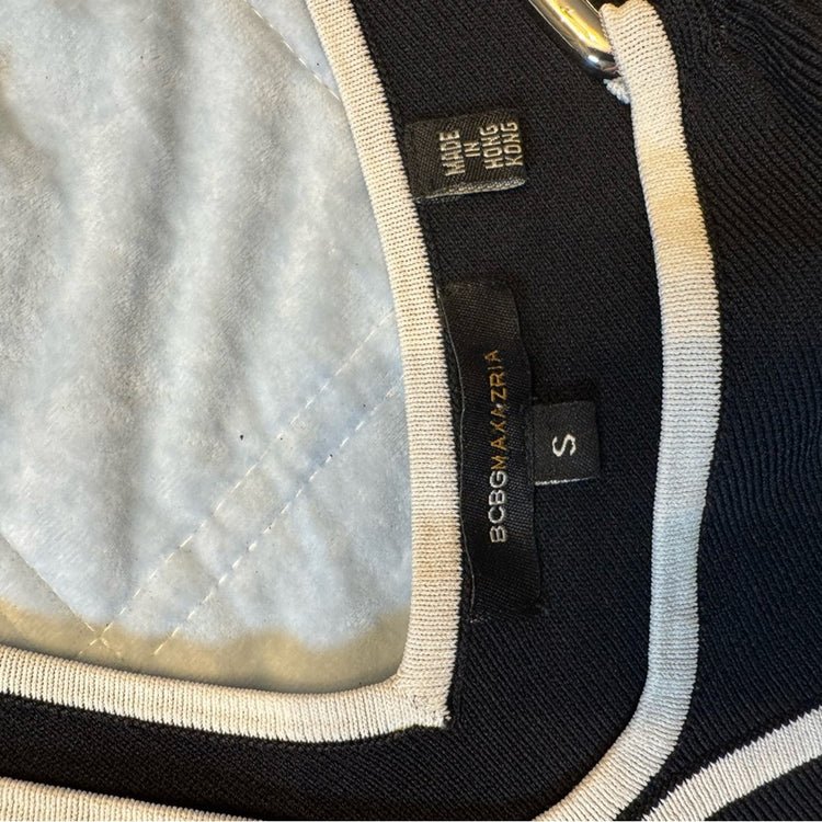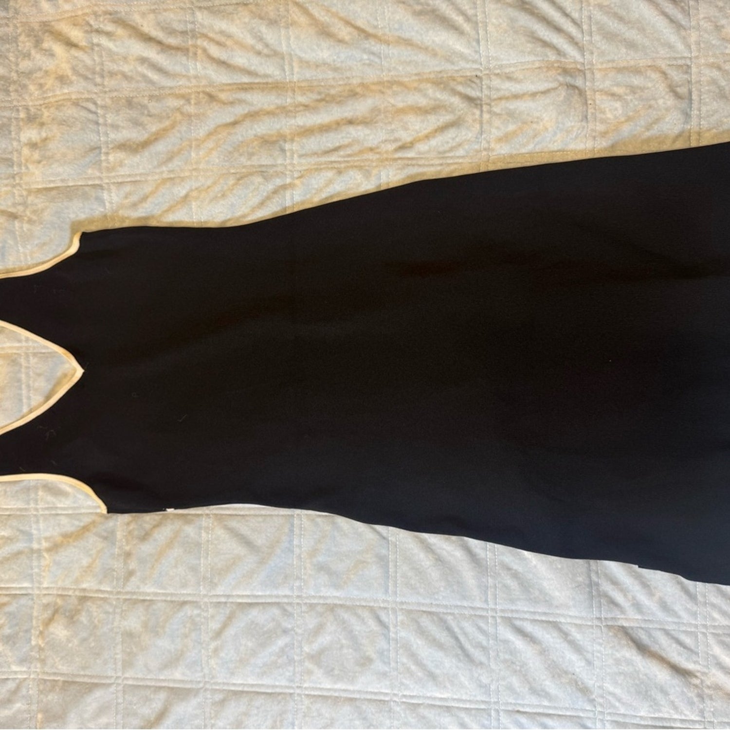 Stylish black dress featuring white accents. Ideal for versatile styling.
