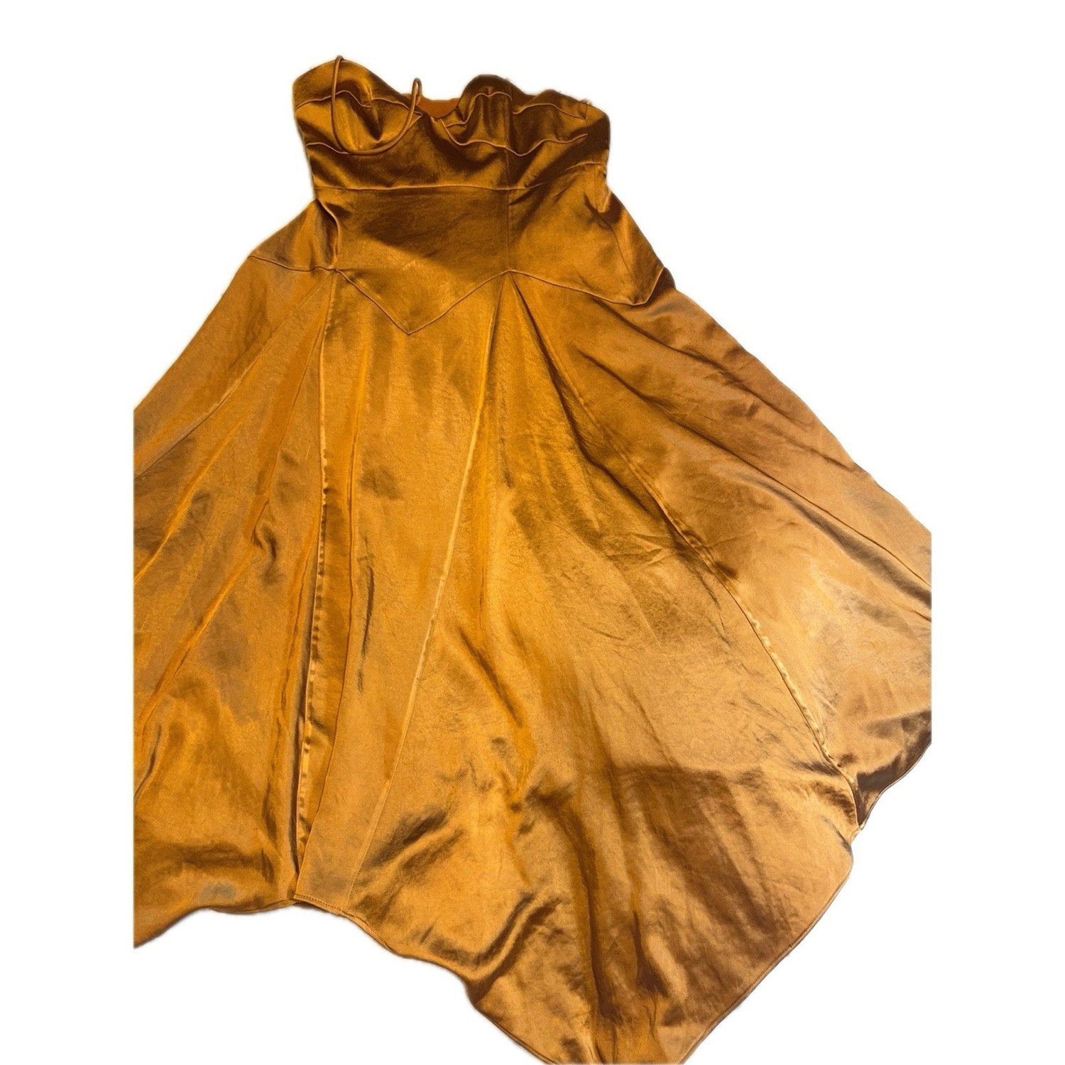 Free People x Fame and Partners Bronze Satin Slip Gown Dress Women’s Size 10