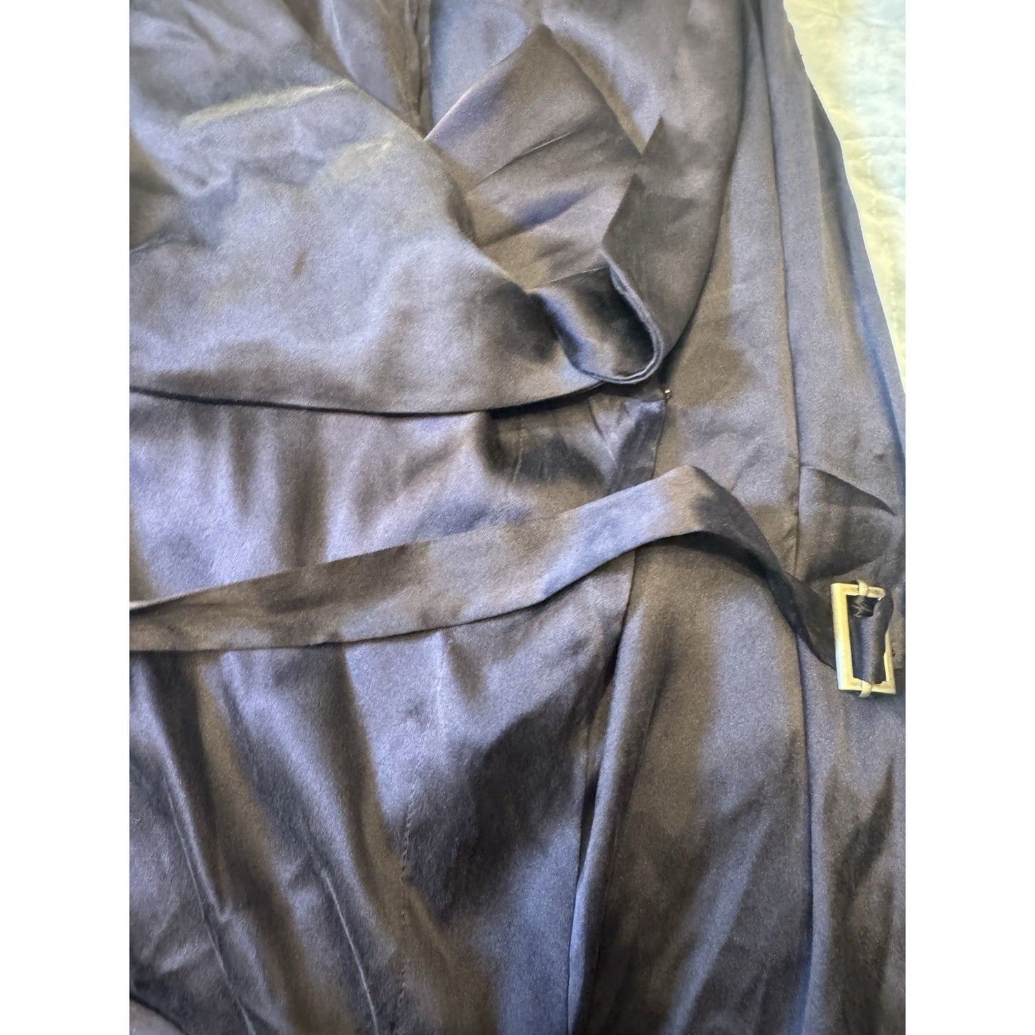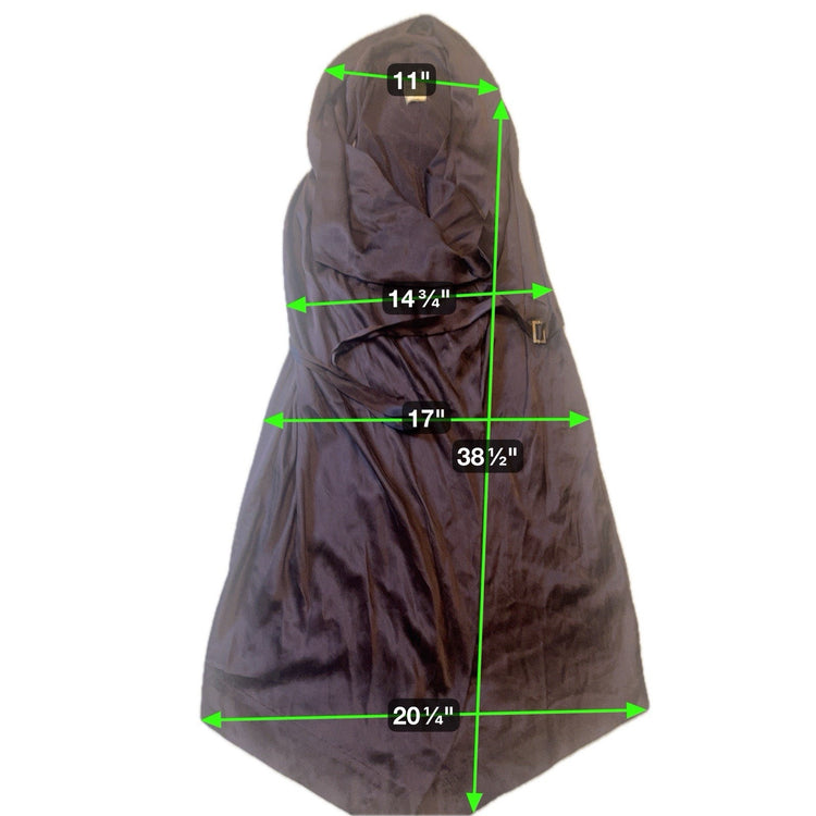 • Details: Adjustable tie belt with buckle, draped construction, minimalist silhouette