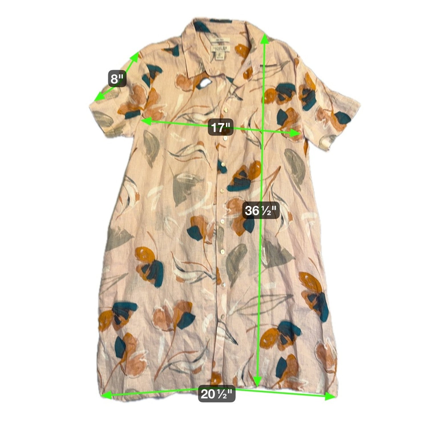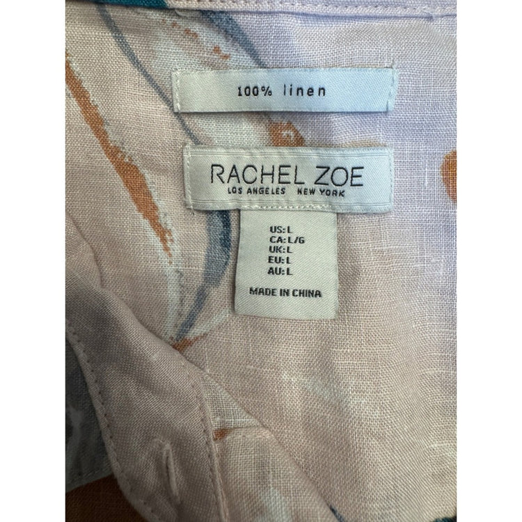 Keywords: Rachel Zoe dress, linen dress, floral dress, shirt dress, button down dress, pink dress, summer dress, casual dress, bohemian dress, boho dress, womens dress, size L dress