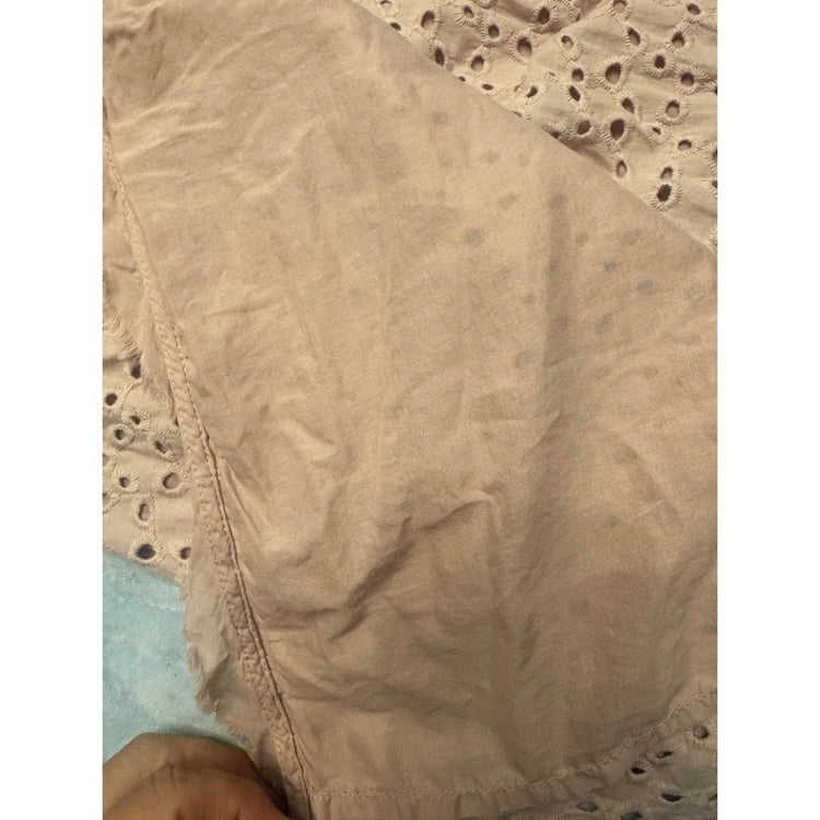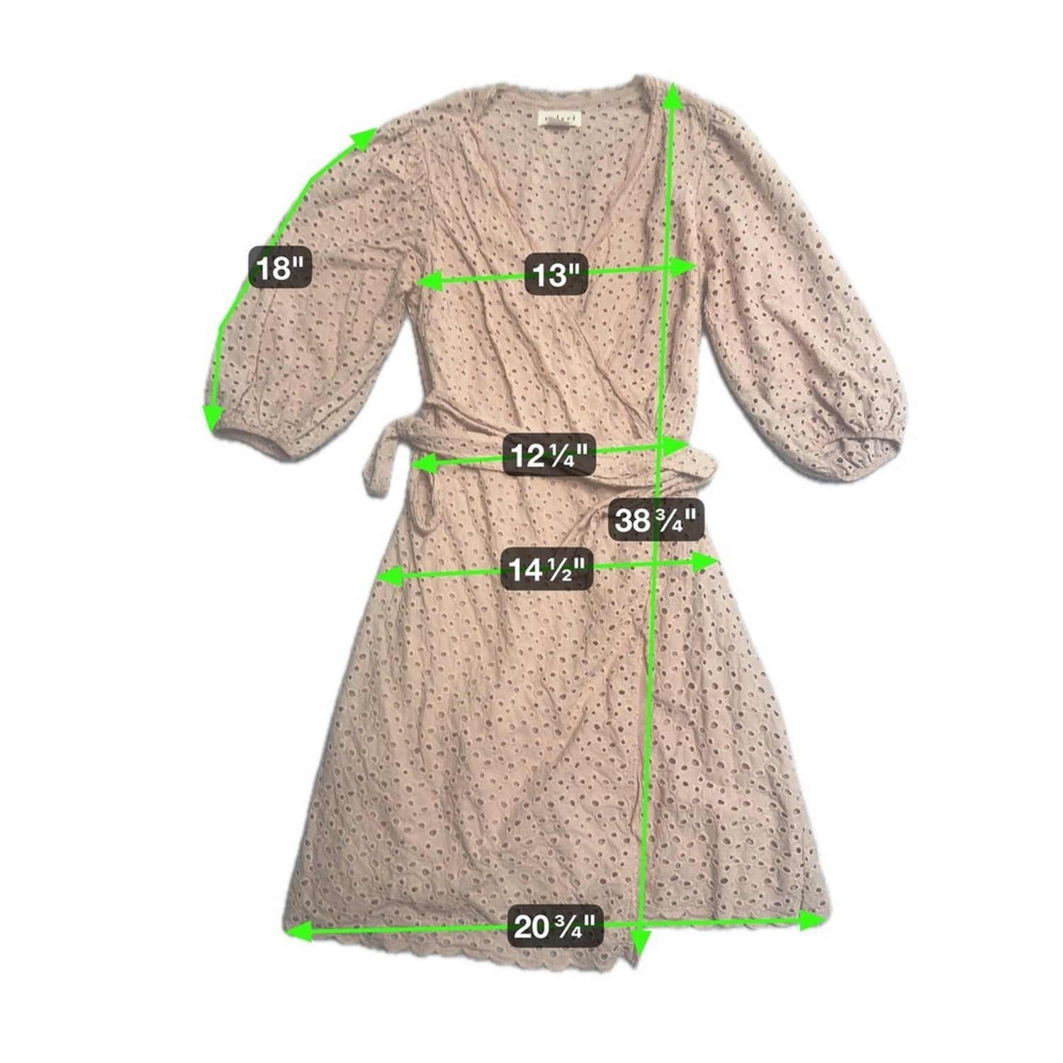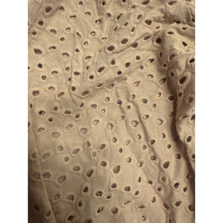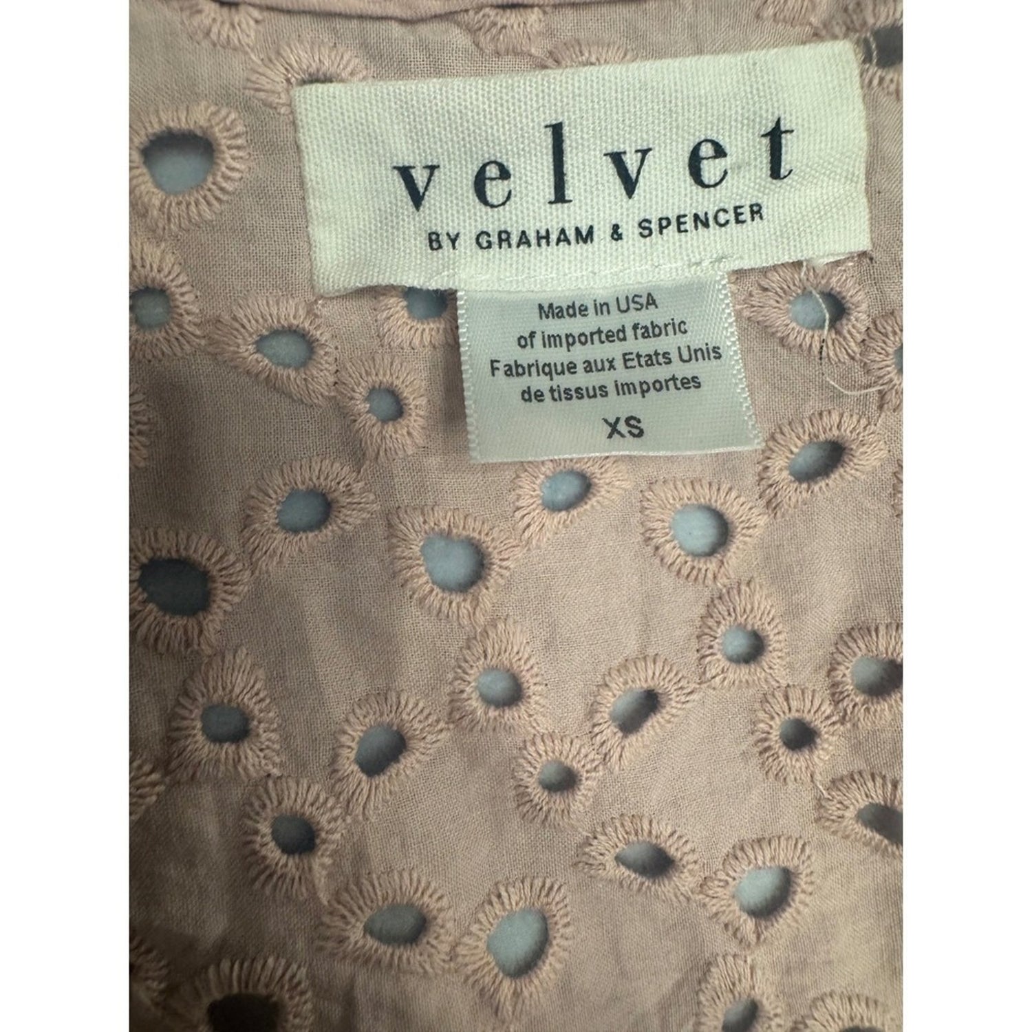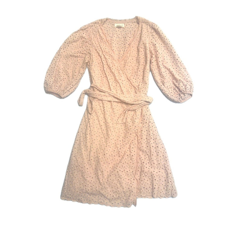 Velvet Graham Spencer Eyelet Wrap Dress XS Pink Beige Made in USA Puff Sleeve