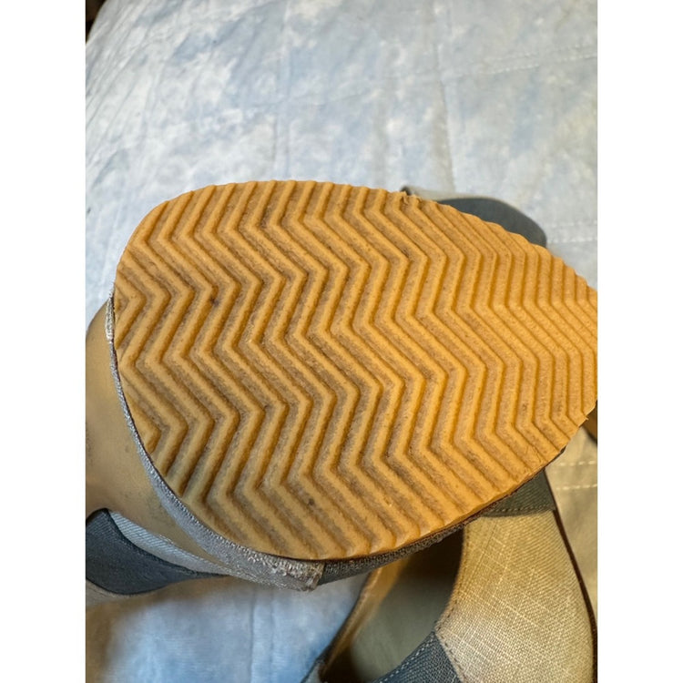 Charlotte Olympia Platform Heels Gray Beige Fabric Block Pumps Size 39