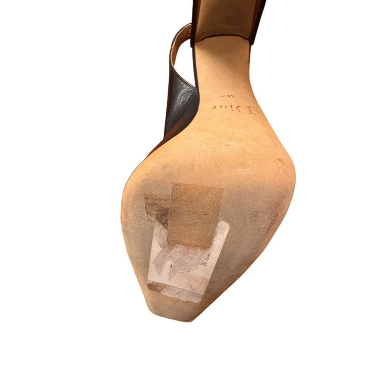 Keywords: Christian Dior, Slingback Heels, Black Heels, Leather Pumps, Silver Toe Cap,