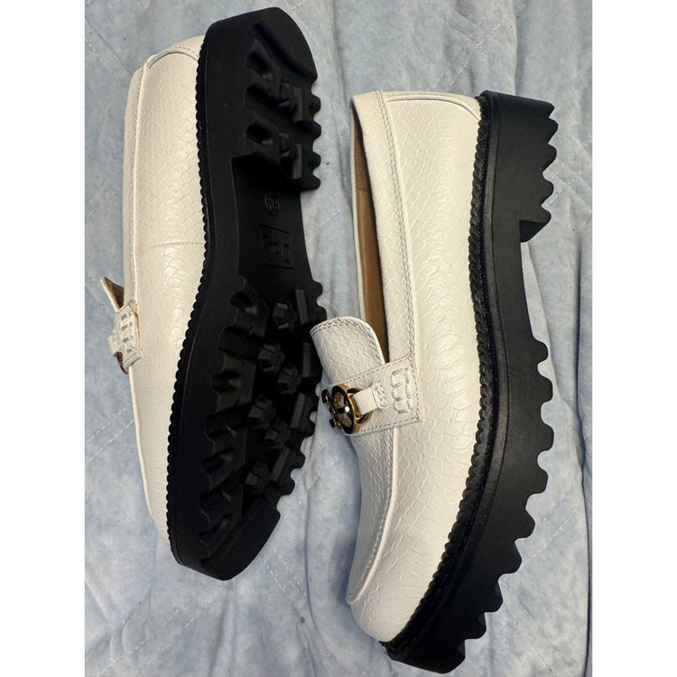 Circus by Sam Edelman Loafers Womens Size 8.5 White Lug Sole Gold Hardware