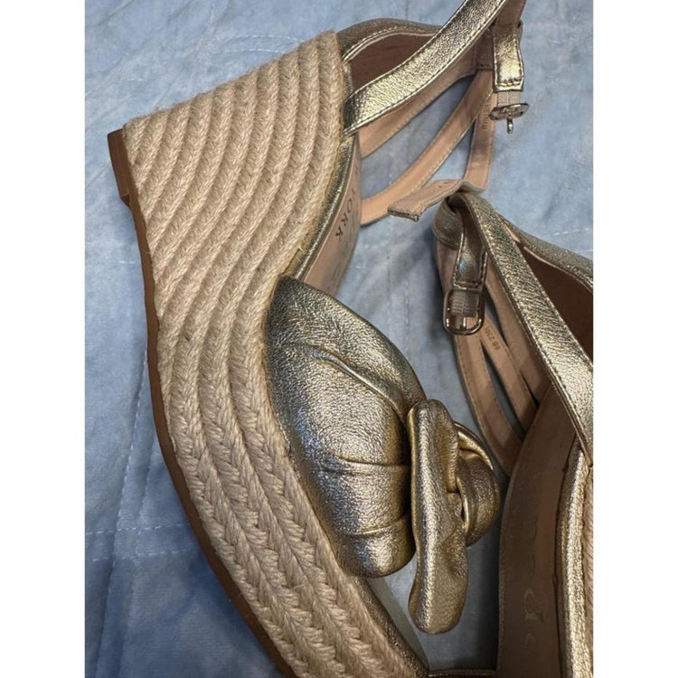 Kate Spade New York Tianna Metallic Leather Gold Espadrille Wedge Sandals size 6