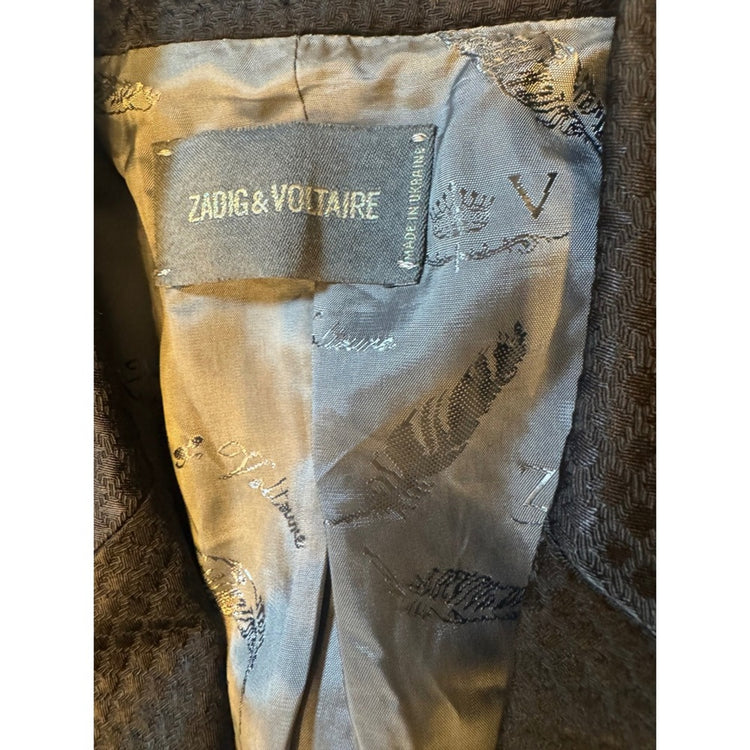 Zadig & Voltaire Virgin BF Deluxe Jacket Black Textured Blazer Size 38 size 6