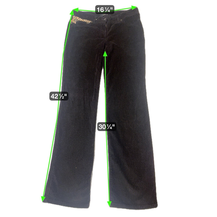 Burberry London Black Corduroy Pants Nova Check Trim Women’s US 6 Italy