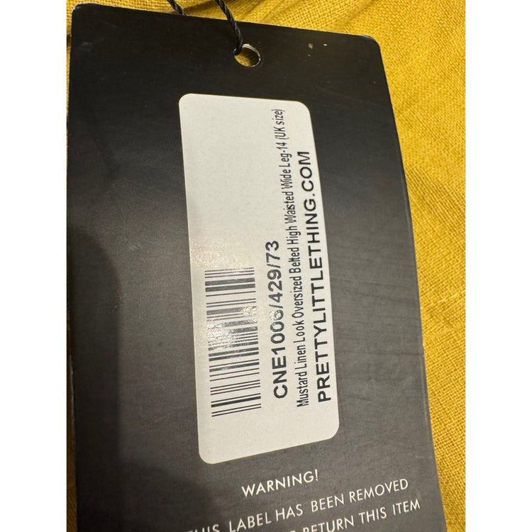 Keywords: PrettyLittleThing, mustard pants, linen pants, wide leg pants, high waist pants, belted pants, oversized pants, casual pants, summer pants, boho pants, women's pants, size 10, new with tags