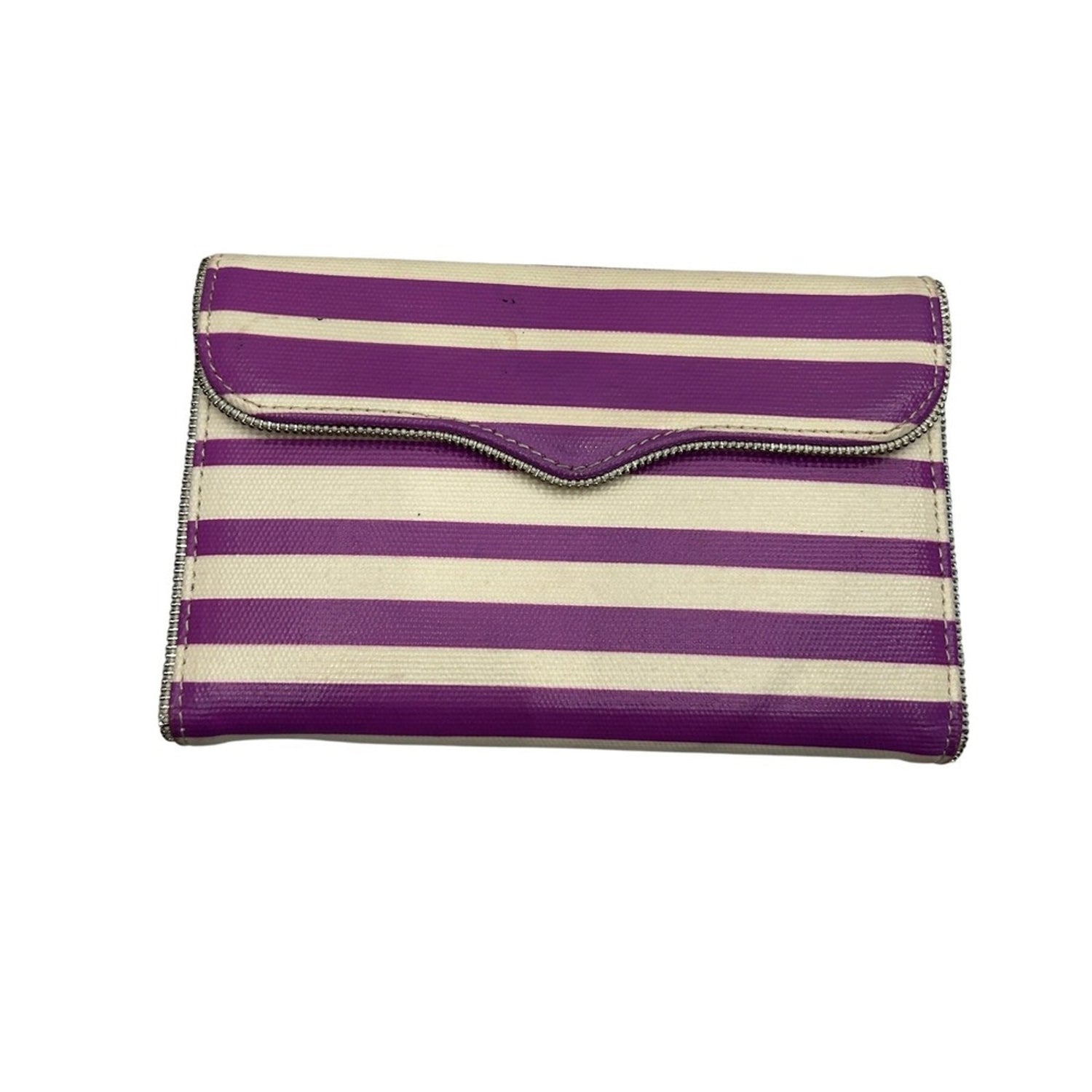 Y2K Rebecca Minkoff Striped Purple White Canvas Continental Wallet Organizer