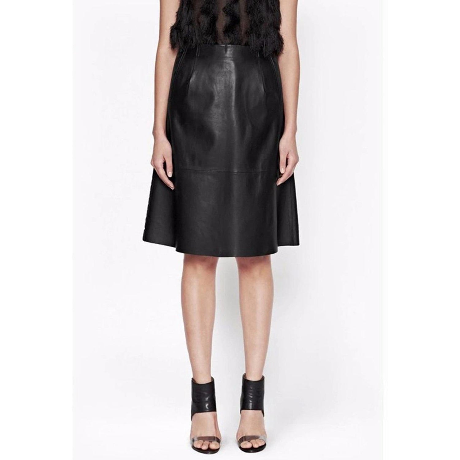 The French Connection Rocker A-Line Lamb Leather Skirt in size 4 is a stylish and high-quality piece of women's clothing. Made from 100% lamb leather, this knee-length skirt features a solid black color and A-line style, perfect for adding a touch of sophistication to any outfit. With a lined interior, it offers both comfort and durability, making it a versatile addition to any wardrobe. Made in India, this skirt combines quality craftsmanship with a trendy design, reflecting the brand's reputation for French-inspired fashion.