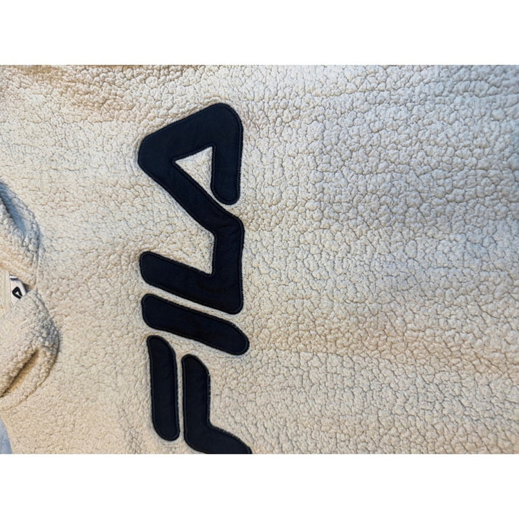 Keywords: FILA hoodie, sherpa hoodie, fleece hoodie, pullover hoodie, cream hoodie, women's hoodie, FILA sweatshirt, medium hoodie, casual hoodie, sportswear, winter hoodie, cozy hoodie, hooded sweatshirt