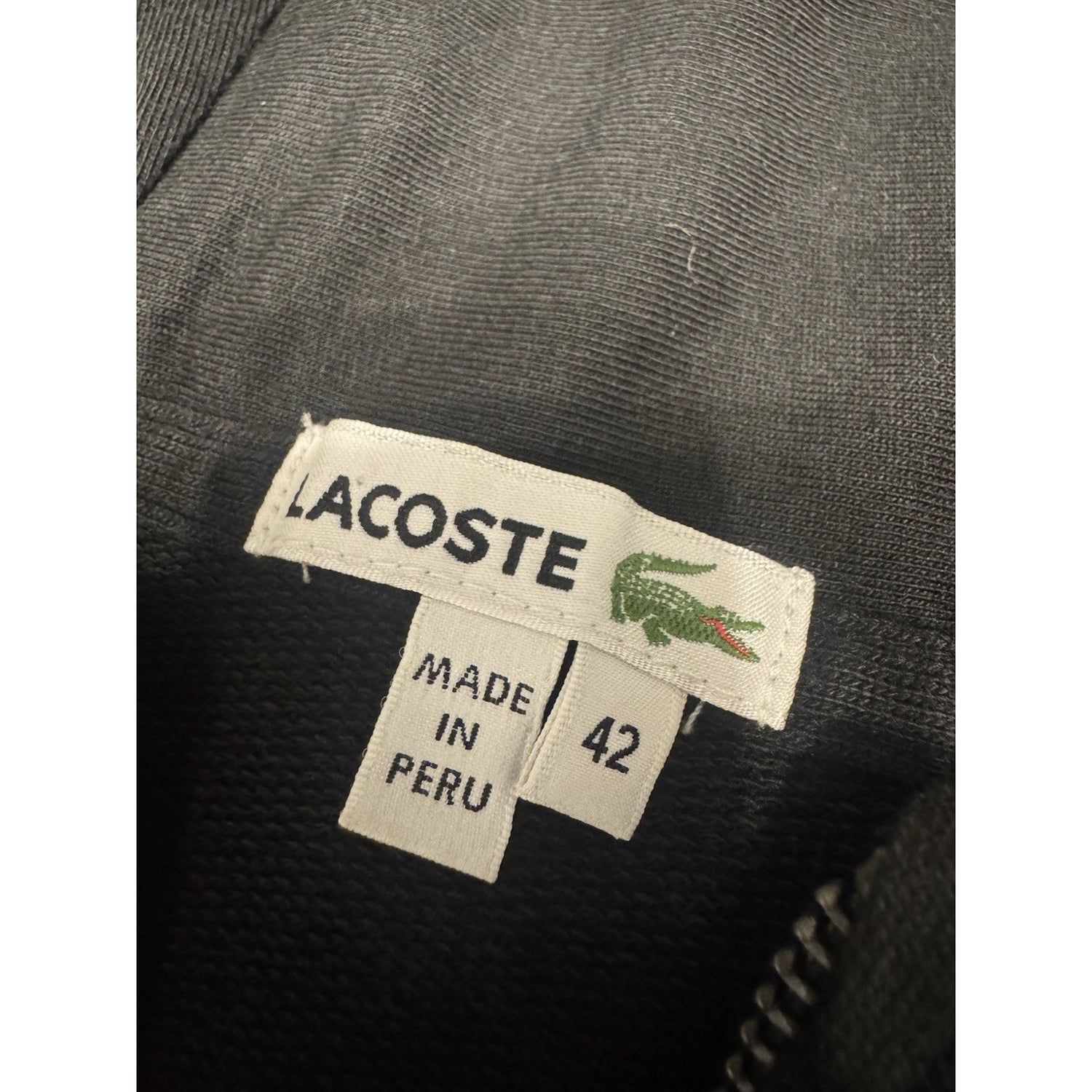 Lacoste Black Full Zip Hoodie Sweatshirt Croc Logo Size 42 Unisex