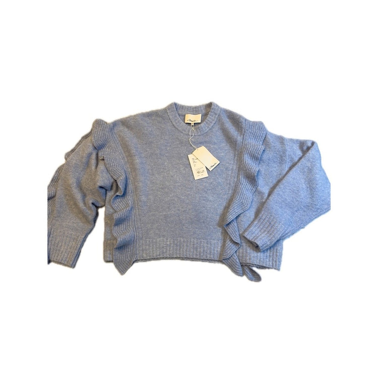 3.1 Phillip LimRuffle Trim Knit Sweater Baby Blue Lightweight Knit Size S