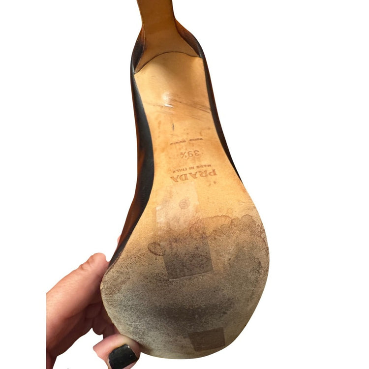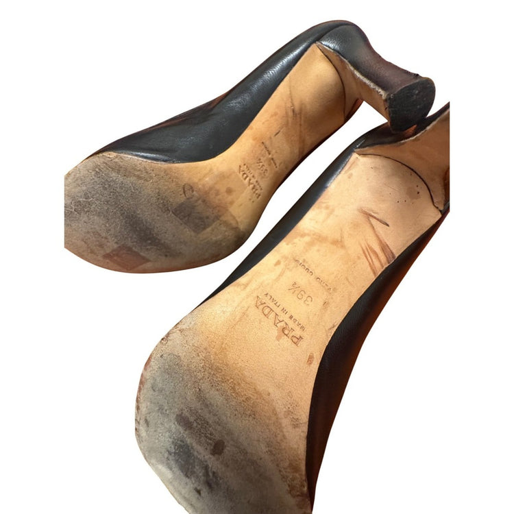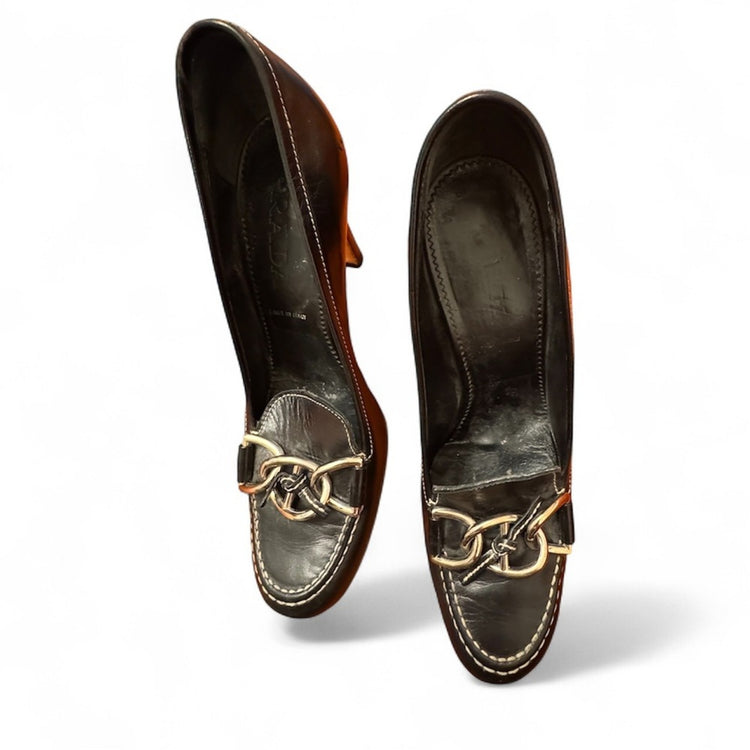 Prada Black Leather Chain Link Loafer Pumps Heels Size 39.5 Made in Italy