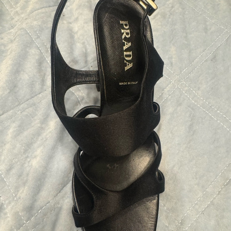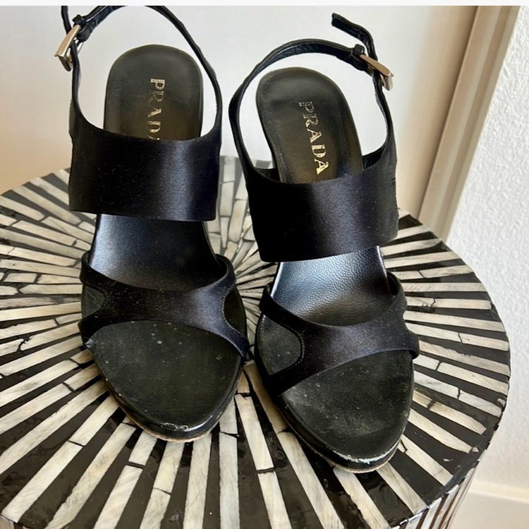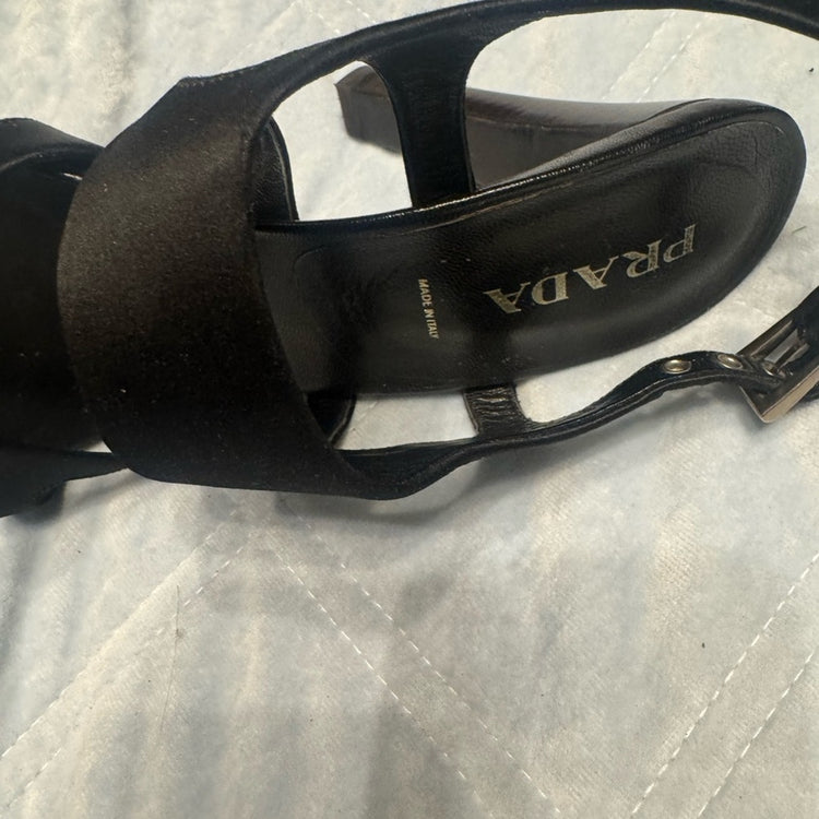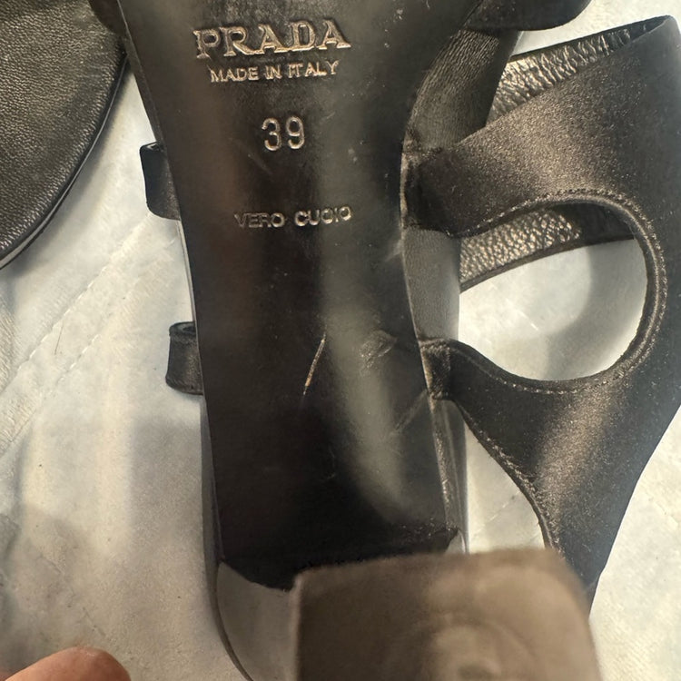 Prada Black Satin Strappy Slingback Heels Size 39 (US 9)