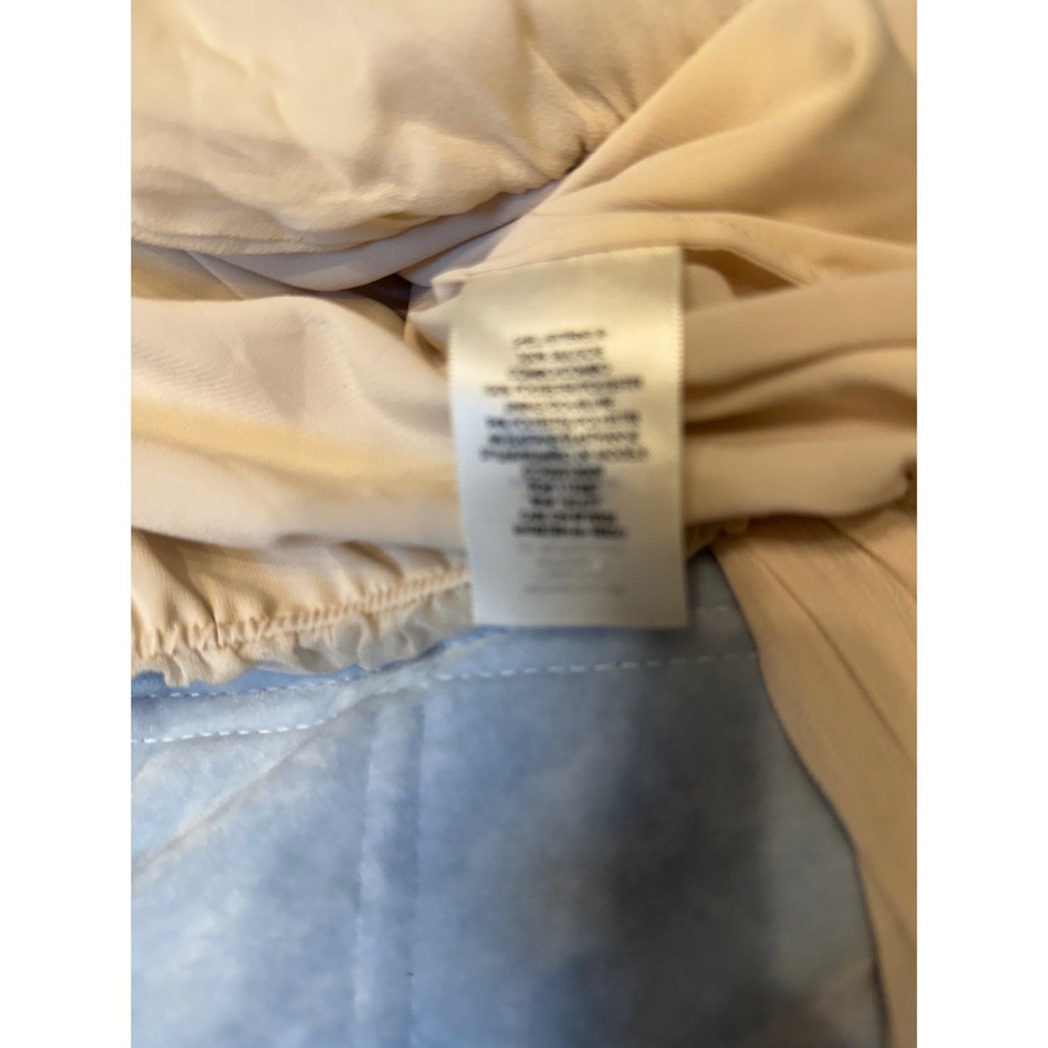 Alice + Olivia cream pleated kimono style blouse. This chic top features dramatic flare sleeves and a cropped silhouette.