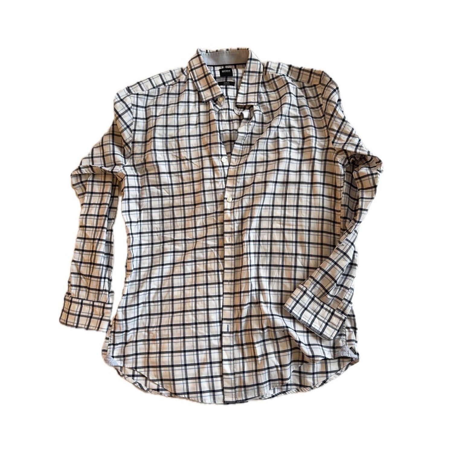 BOSS Hugo Boss Slim Fit Stretch Plaid Dress Shirt Mens Medium
