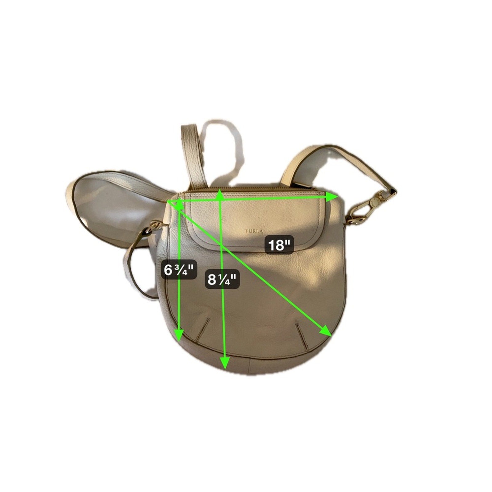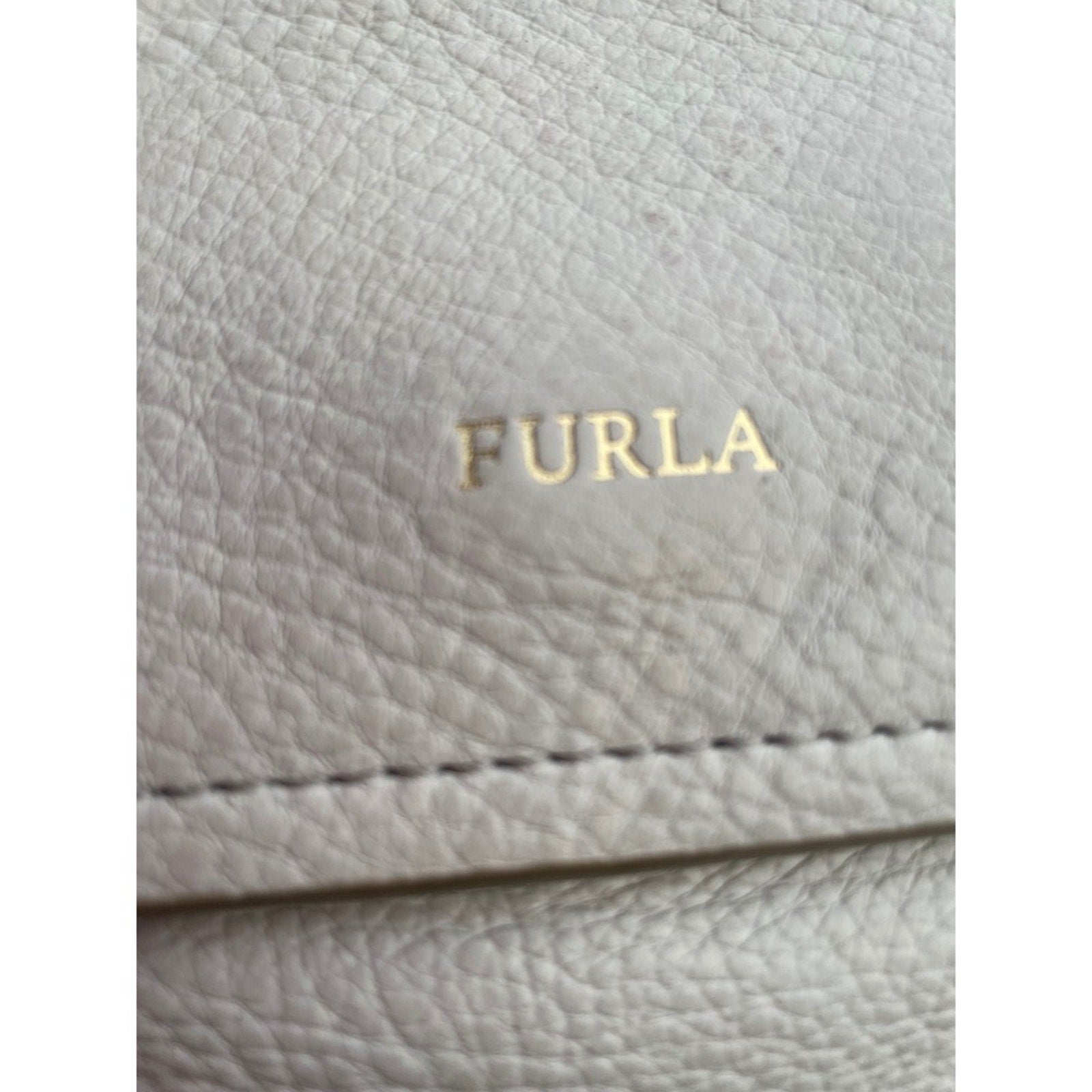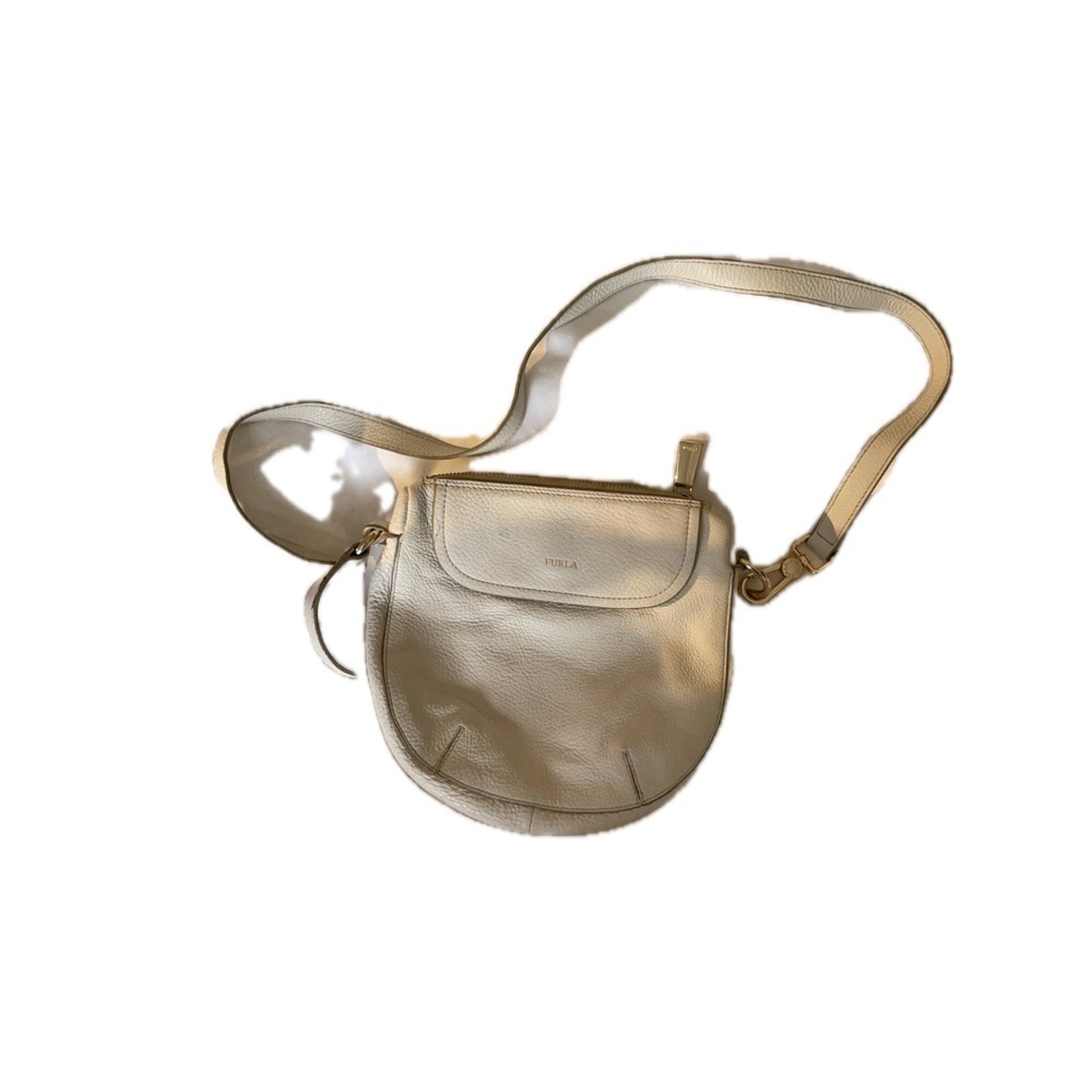 Keywords: Furla bag, leather handbag, crossbody purse, shoulder bag, flap bag, zip closure, gold hardware, designer bag, neutral bag, everyday bag, minimalist, chic, lightweight