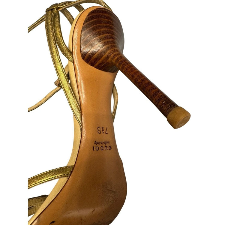 Keywords: Gucci heels, gold sandals, strappy heels, ankle strap shoes, dress shoes, womens heels, designer shoes, luxury footwear, gold heels, Gucci shoes, leather heels, evening shoes, party shoes