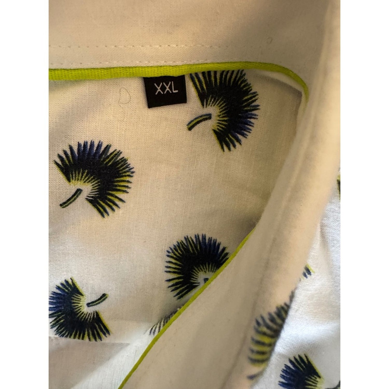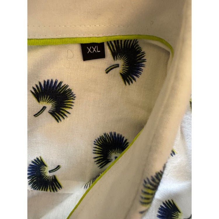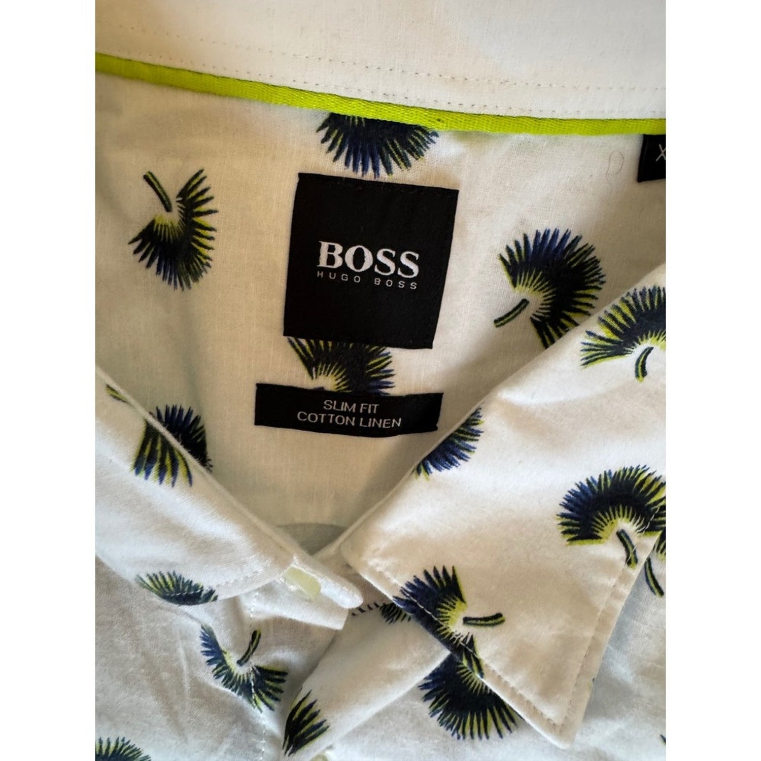 Keywords: Hugo Boss shirt, Men's shirt, Short sleeve button up, Slim fit shirt, Cotton linen blend, Printed shirt, Designer shirt, Casual wear, Summer shirt, Breathable fabric, All over print, Menswear, XXL shirt, Button down shirt, Modern fit