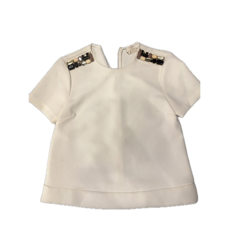 Kate Spade Ivory Embellished Shoulder Short Sleeve Top - Size 2