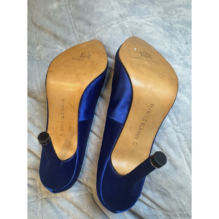 Manolo Blahnik Blue Satin Hangisi Crystal Embellished Pumps Size 41