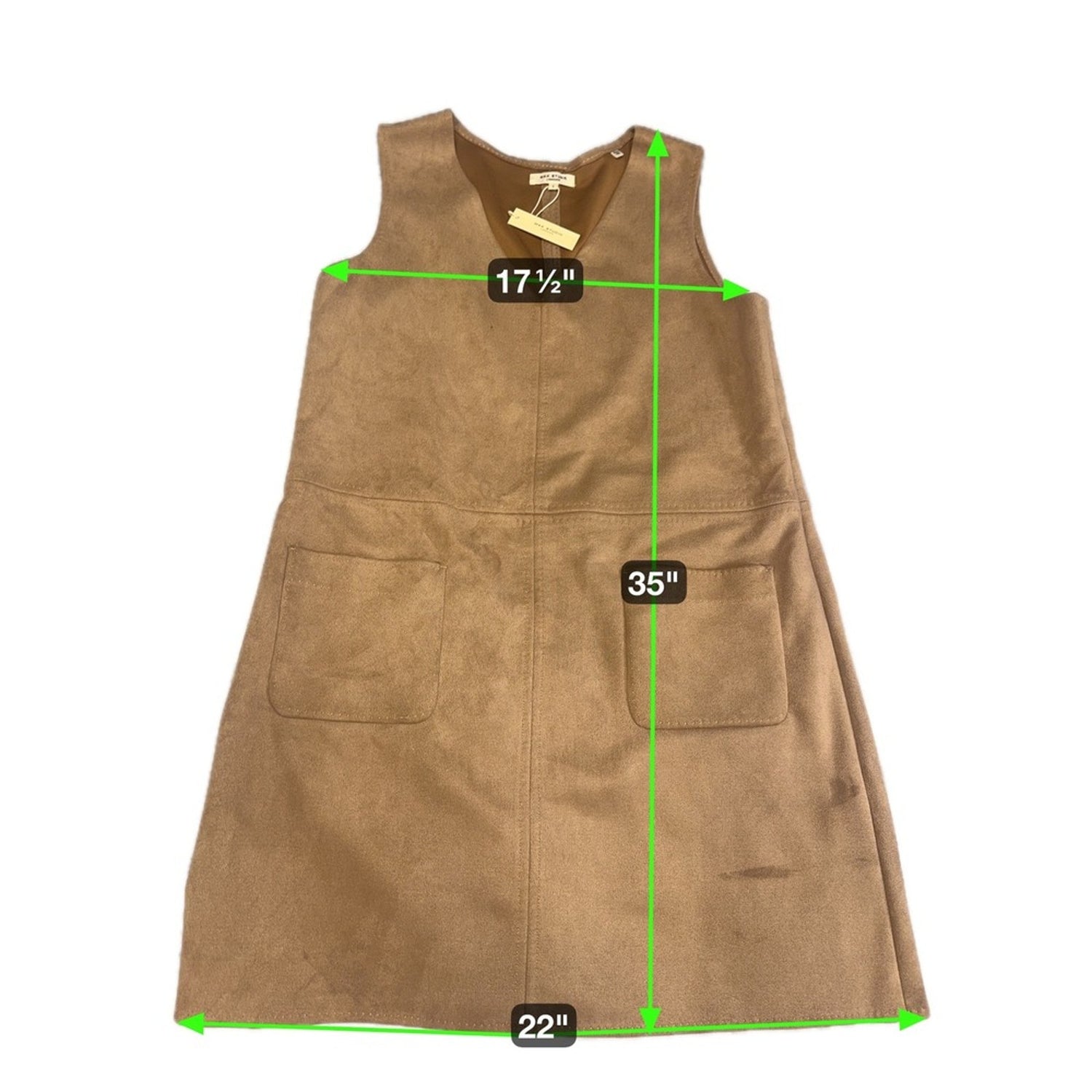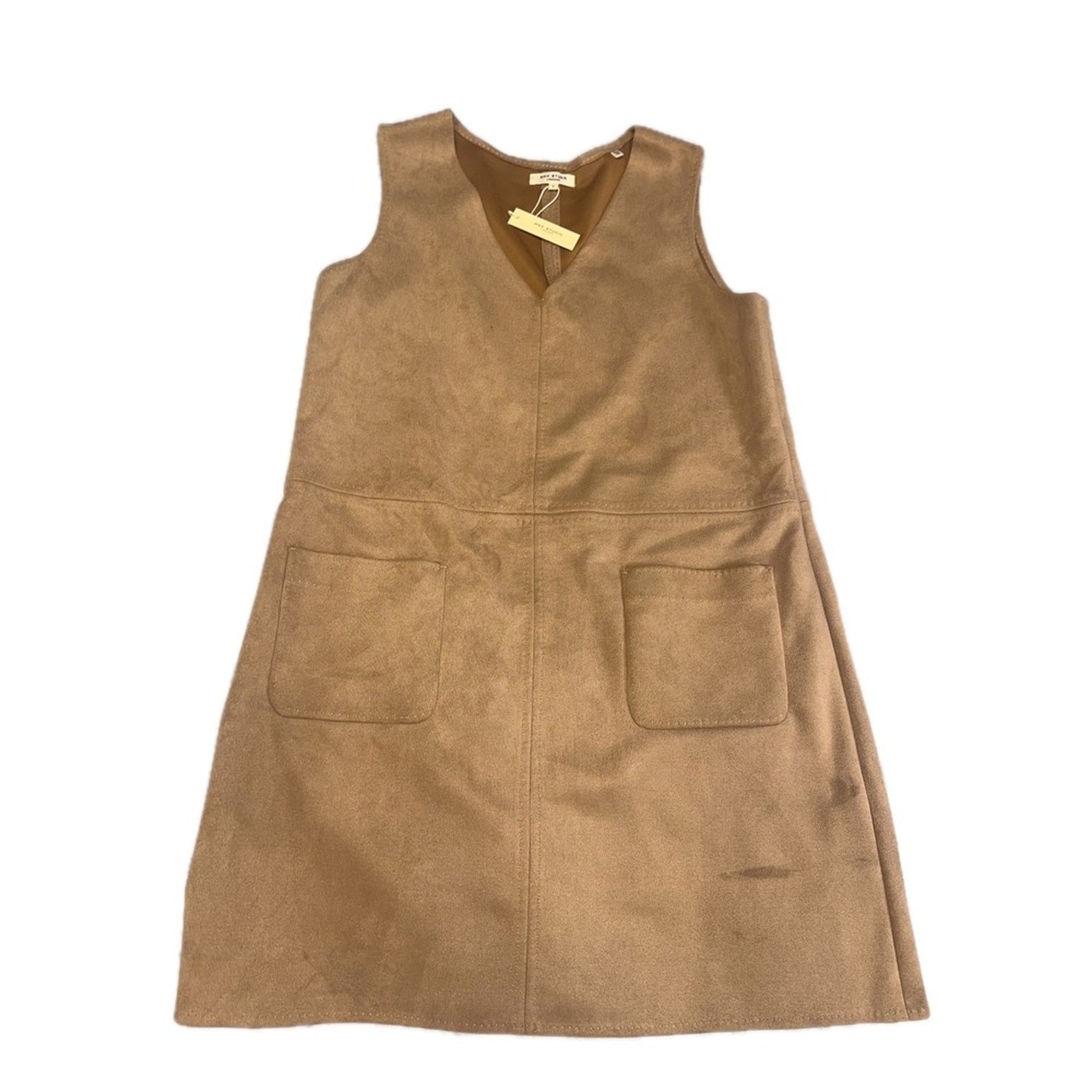 Keywords: Max Studio, London, Dress, Mini Dress, Sleeveless, V-Neck, Pockets, Casual, Boho, Contemporary, Brown Dress, Beige Dress, Suede Dress