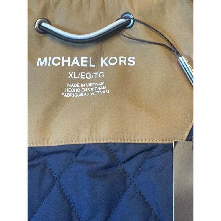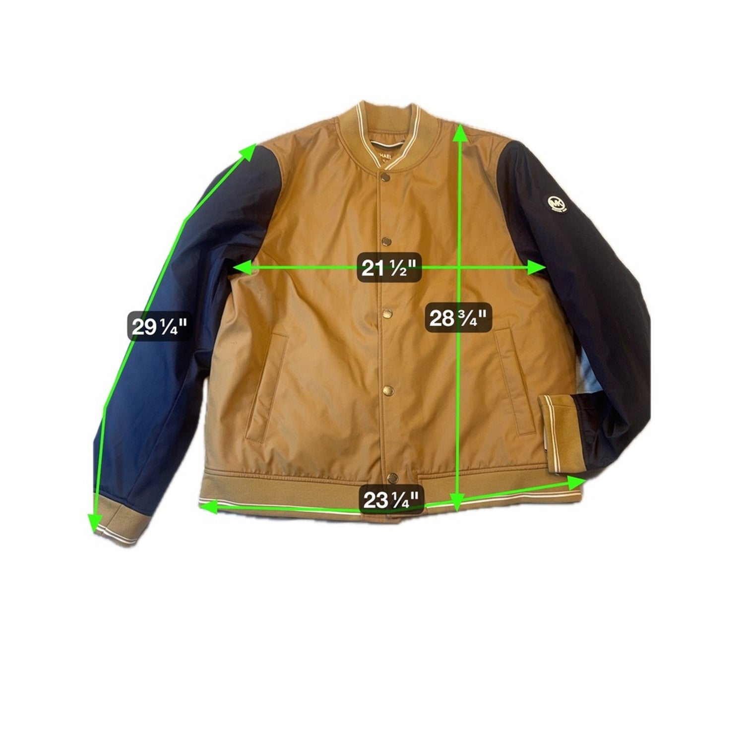 Michael Kors Varsity Jacket XL – Tan & Navy Bomber Coat NWT Logo Patch