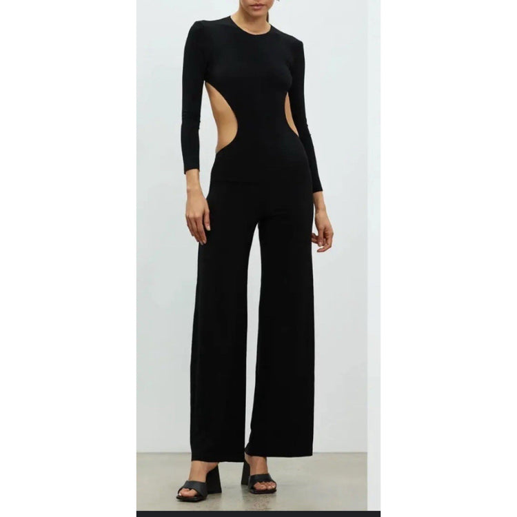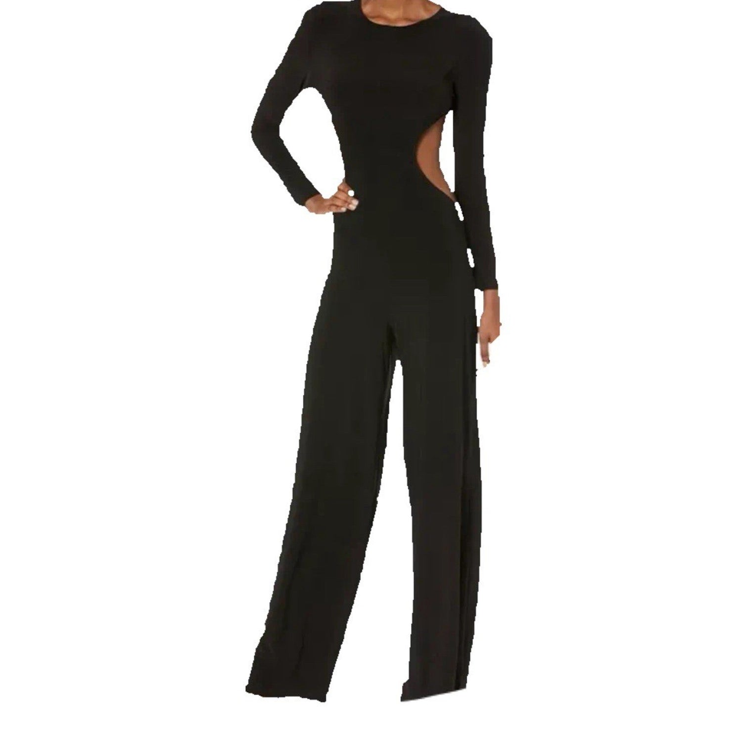 • Features: Side cutouts, open back, long sleeve, wide leg