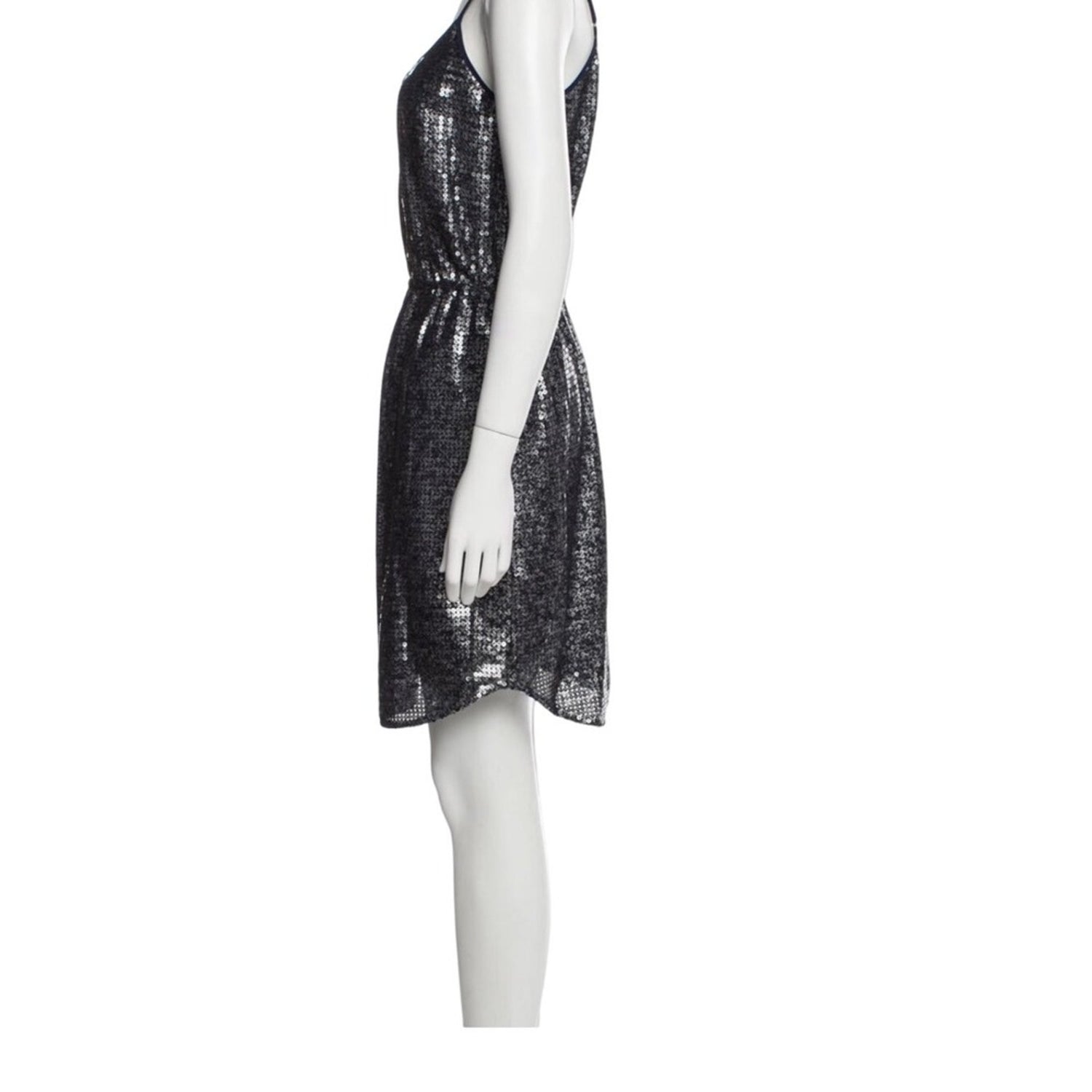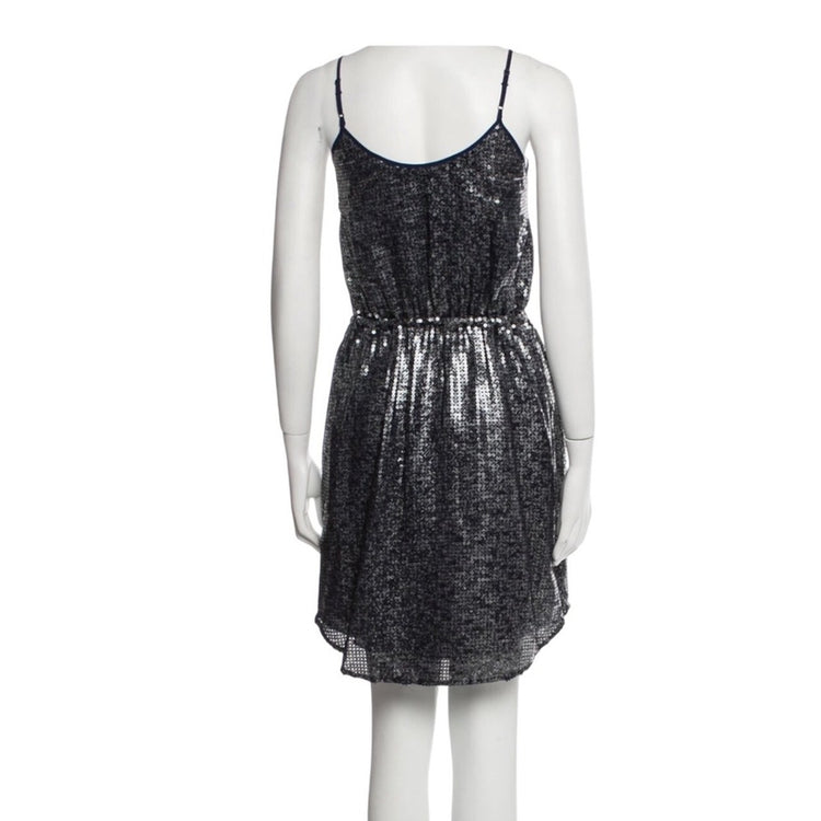 Keywords: Rebecca Taylor dress, mini dress, sequin dress, sparkly dress, scoop neck dress, spaghetti strap dress, party dress, cocktail dress, evening dress, black dress, silver dress, metallic dress, glitter dress, festive dress, special occasion dress
