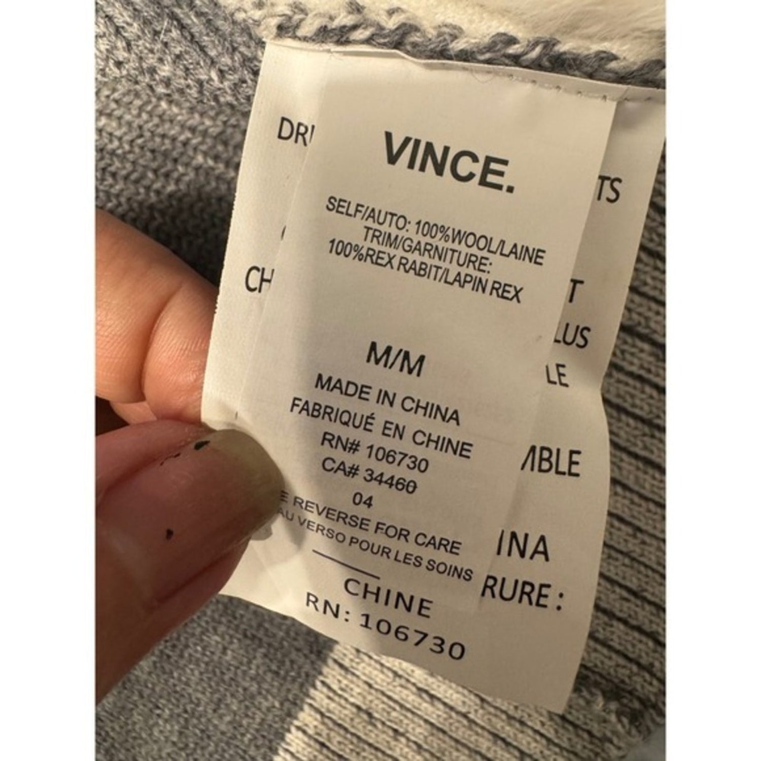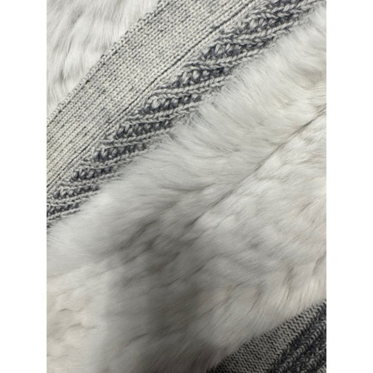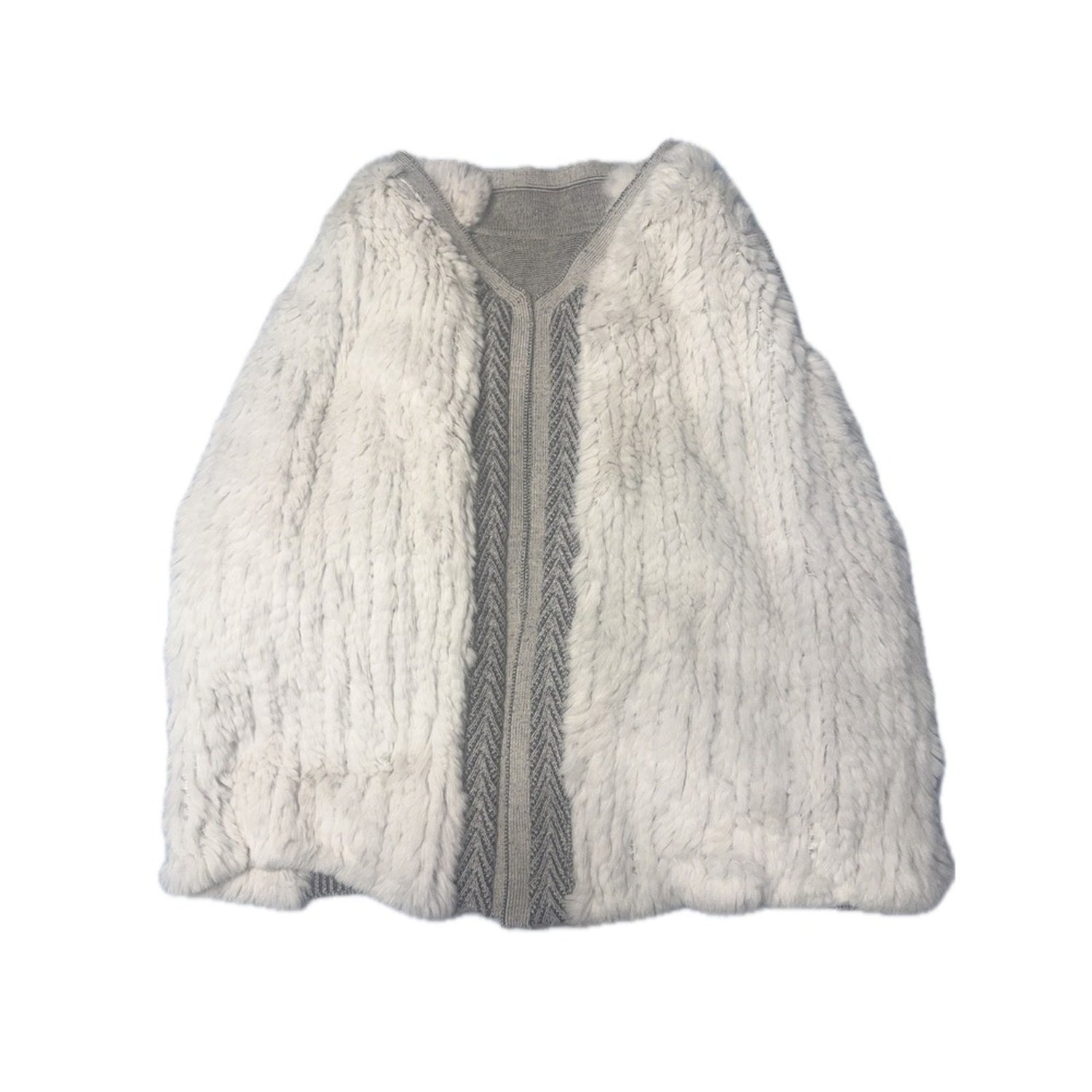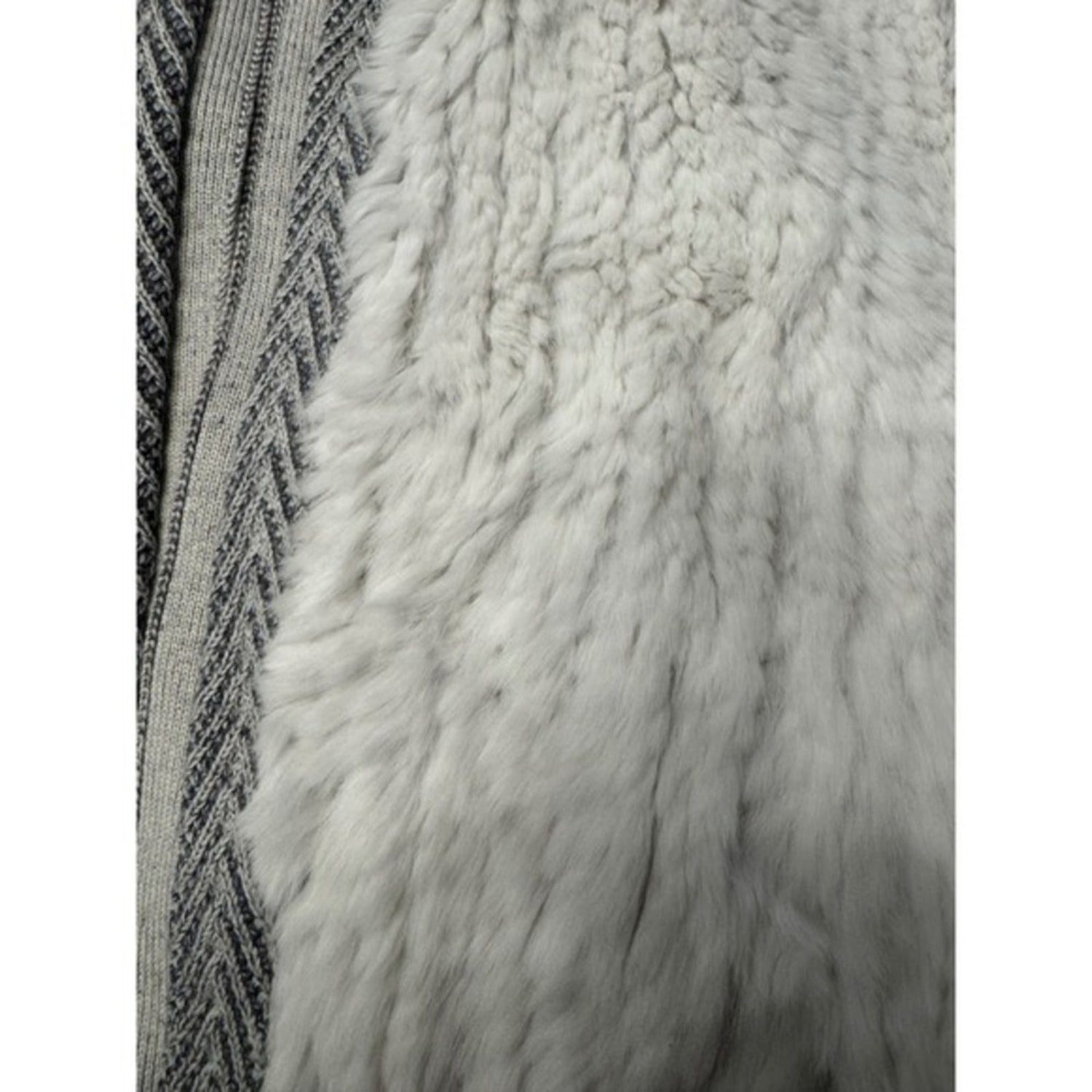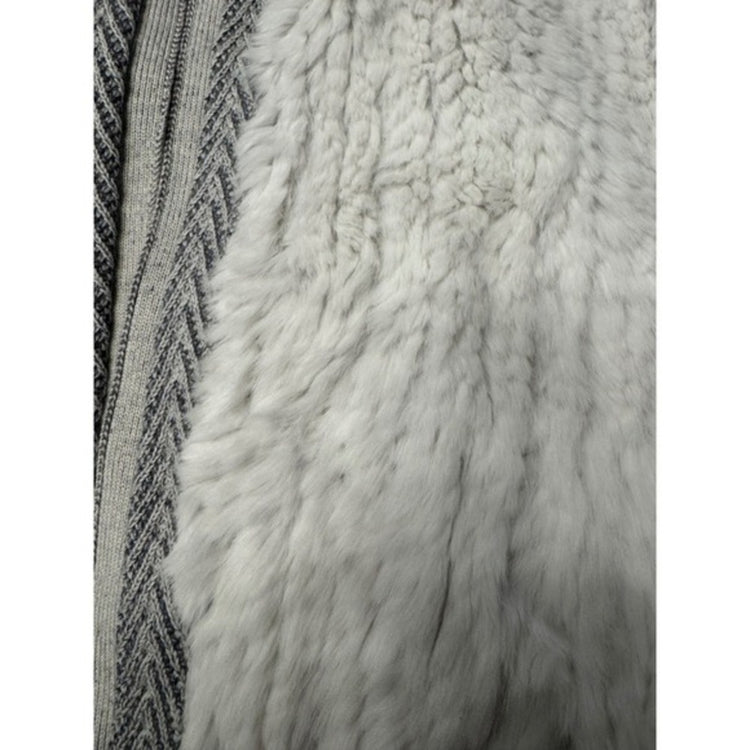Keywords: Vince, cardigan, sweater, fur trim, knit, open front, gray, white, luxury, cozy, chic, designer