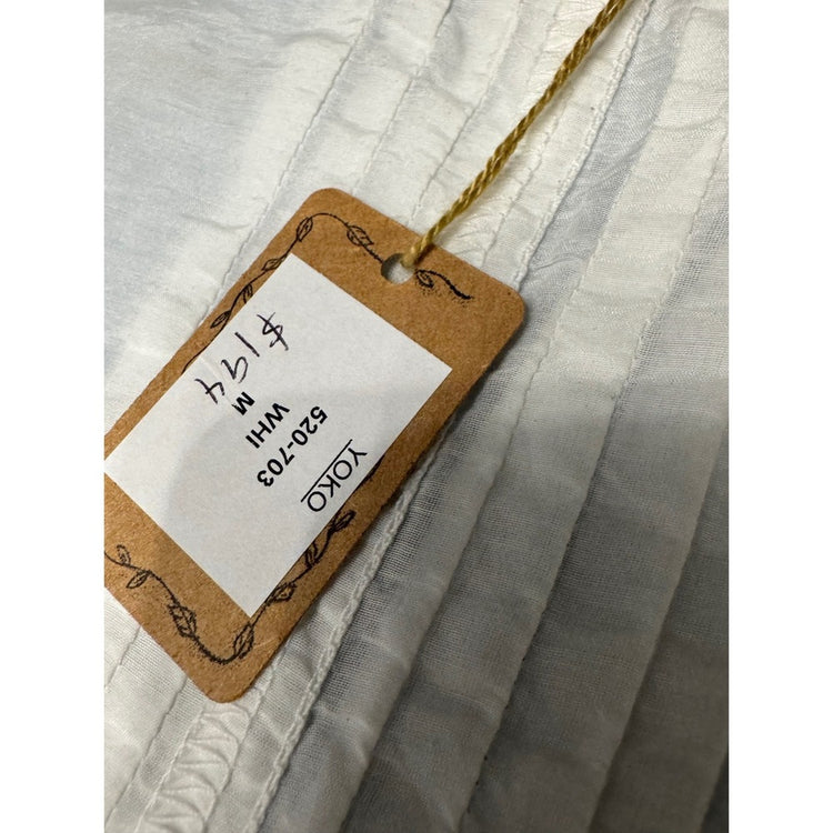 Yoko Apparel Tunic Dress Pleated Button Down White Casual Long Sleeve