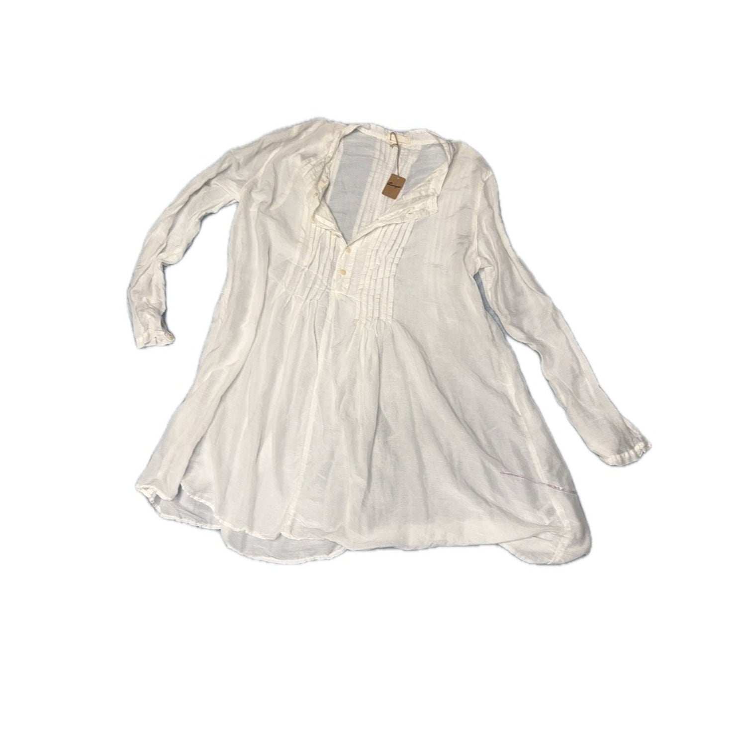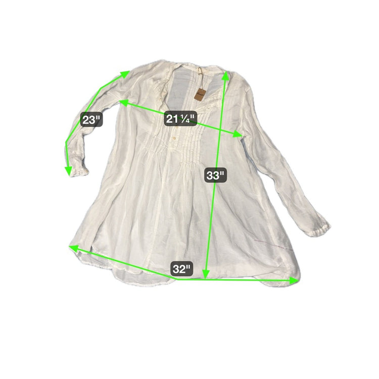 Keywords: tunic top, white blouse, long sleeve top, pleated tunic, button down top, casual top, bohemian top, boho chic, womens top, yoko apparel, relaxed fit, lightweight top, summer tunic