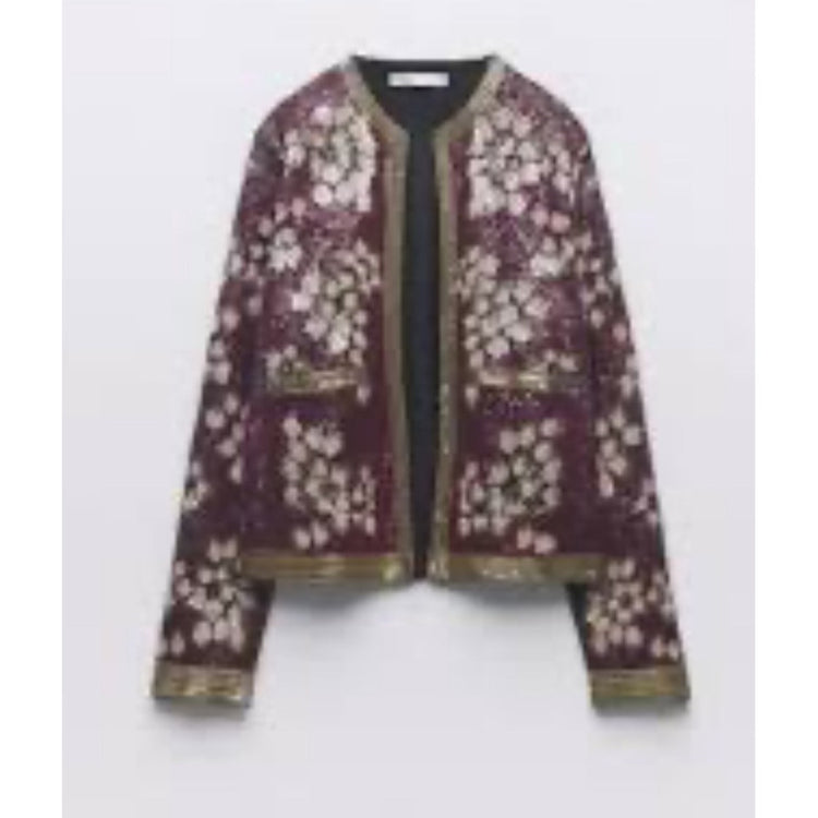 Keywords: ZARA jacket, women's jacket, sequin jacket, floral jacket, embellished jacket, beaded jacket, designer jacket, luxury jacket, statement jacket, cardigan jacket, party jacket, evening jacket, glamorous jacket, sparkly jacket, fashion jacket